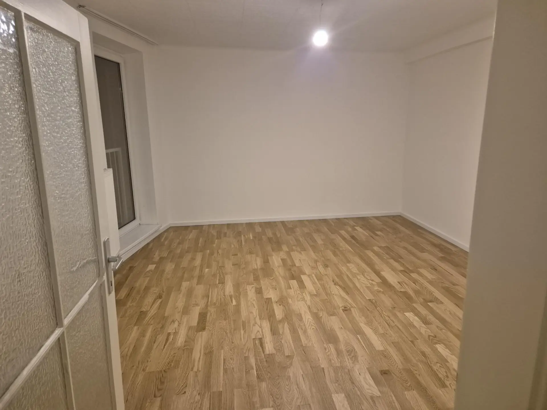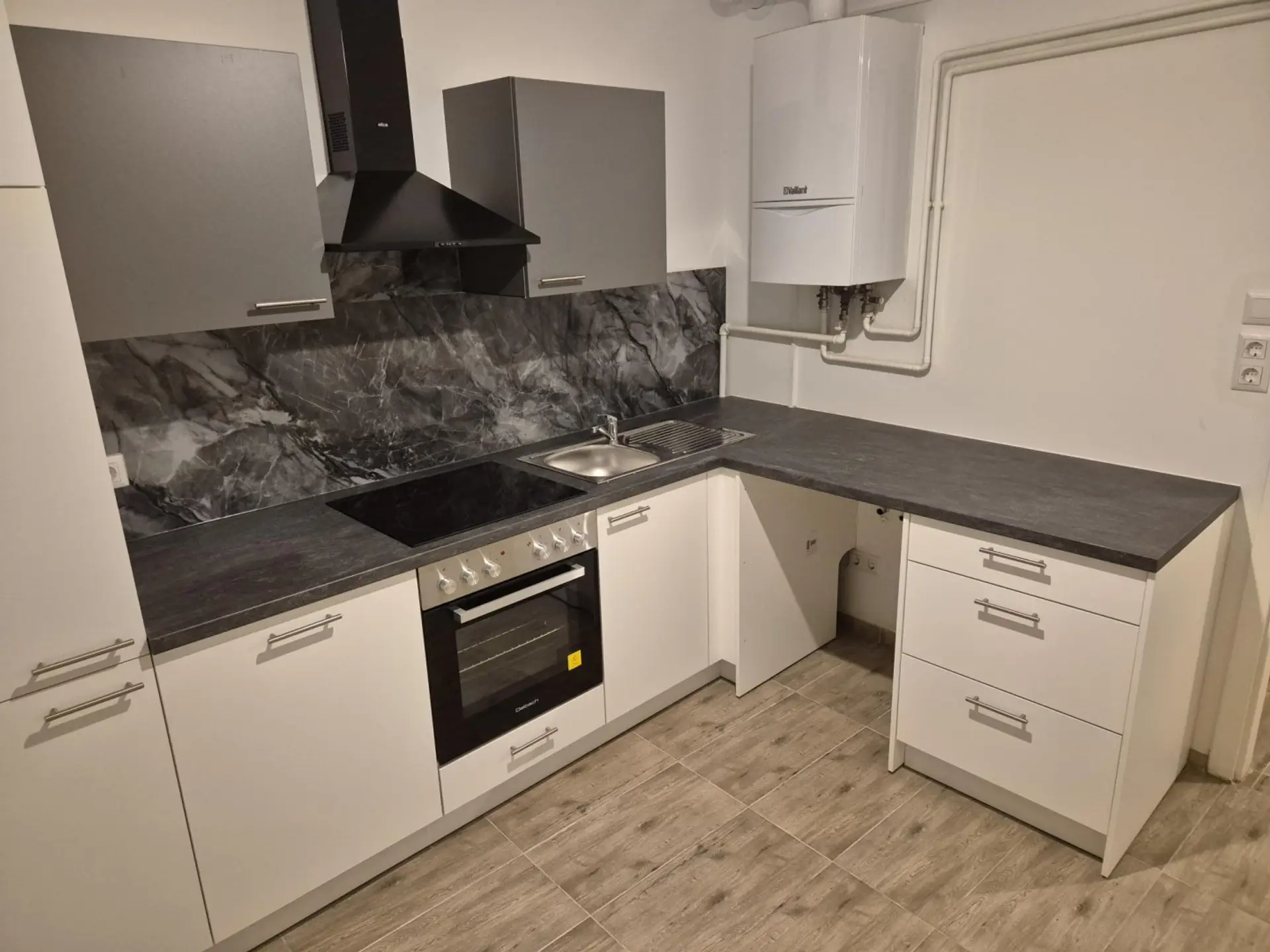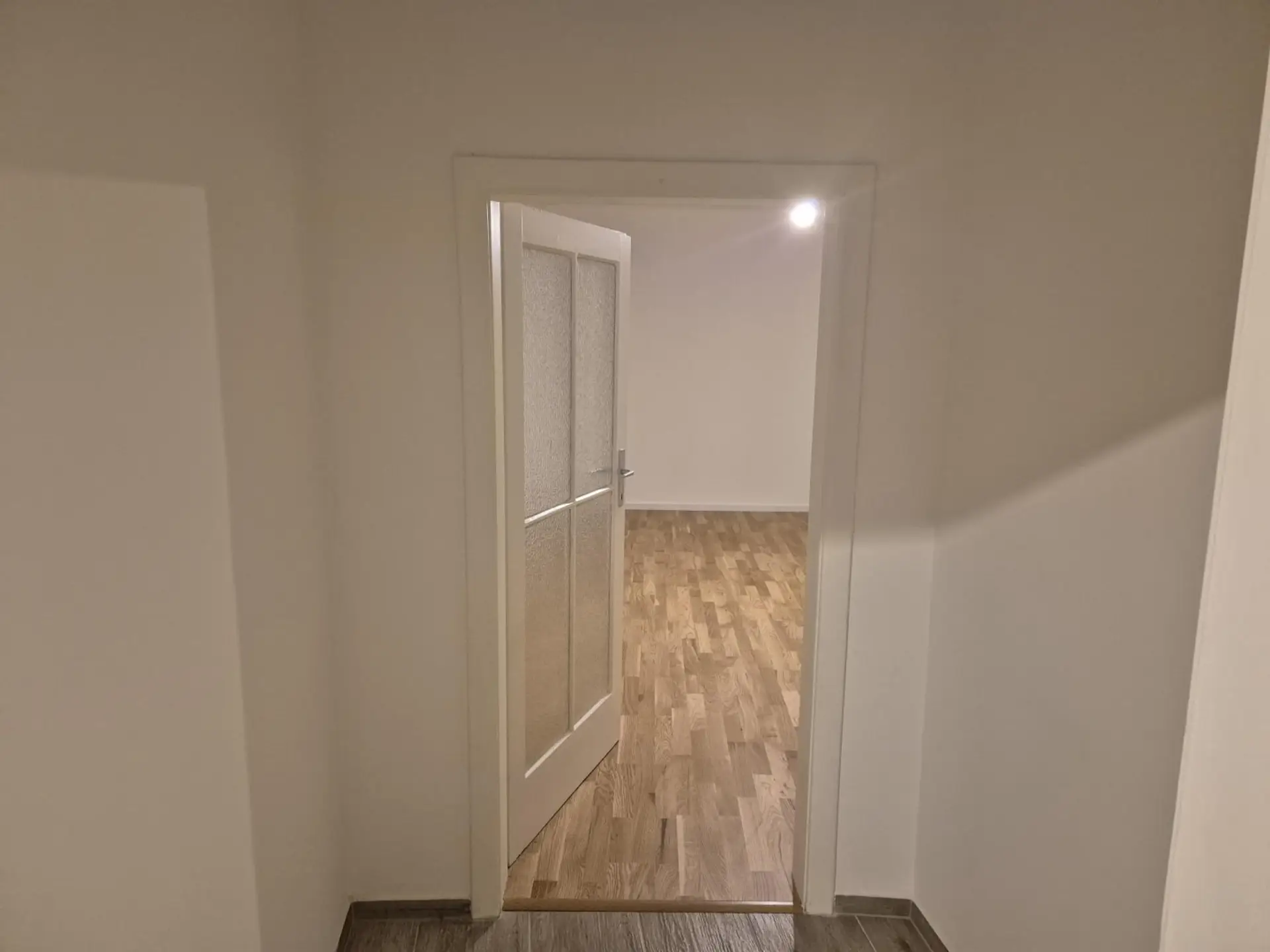 Die Wohnung ist mit neuem Eichen-Parkettboden und einer neuer Küche (mit Waschmaschinenanschluss) ausgestattet.