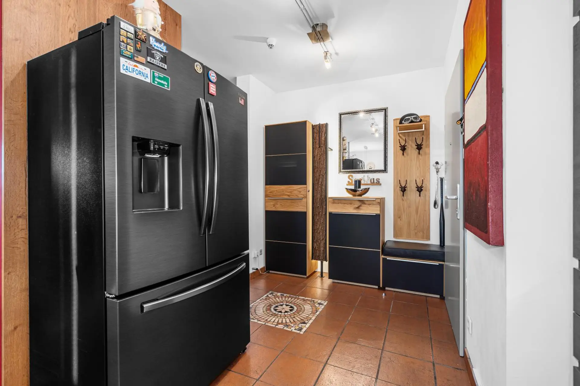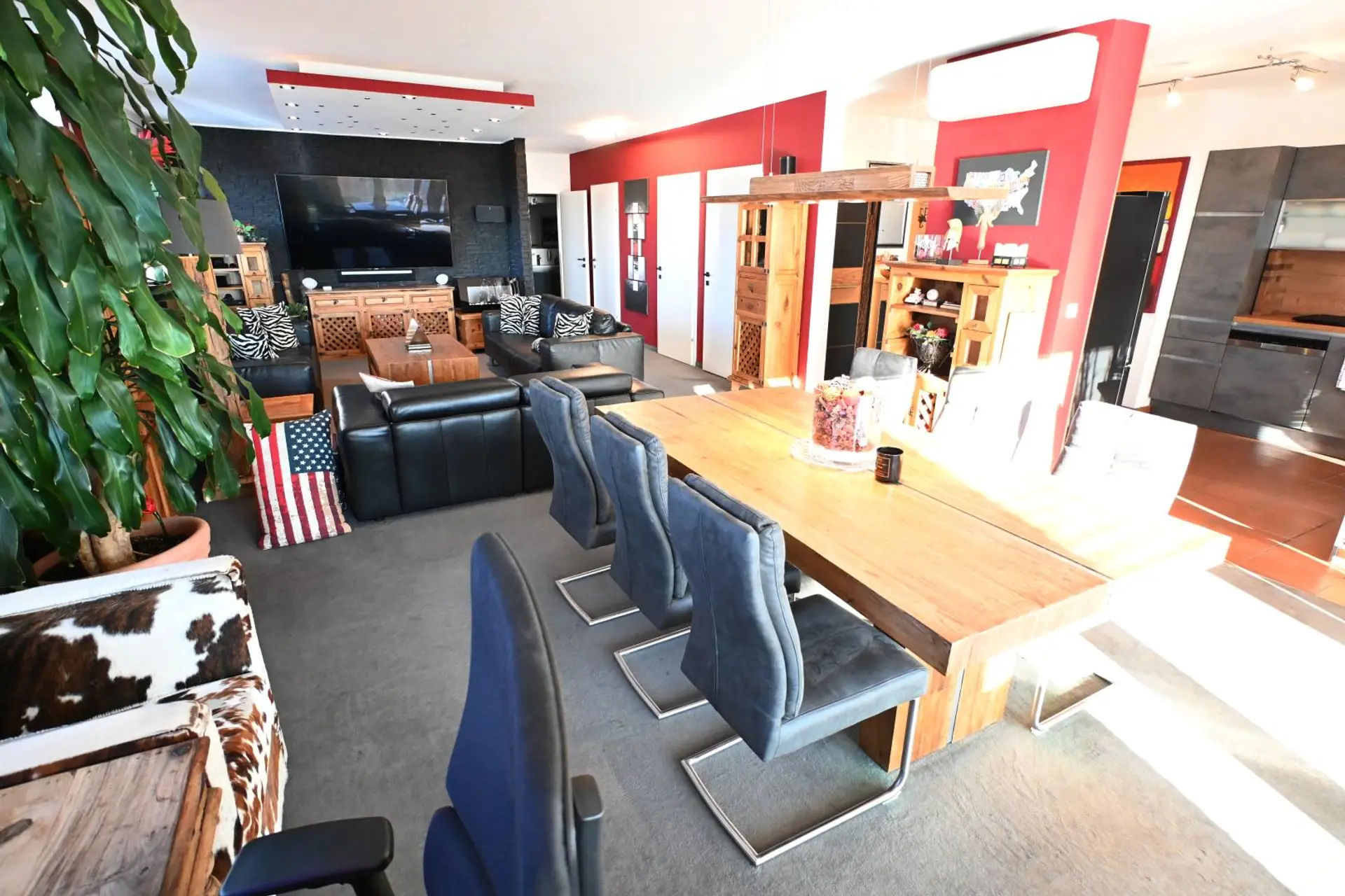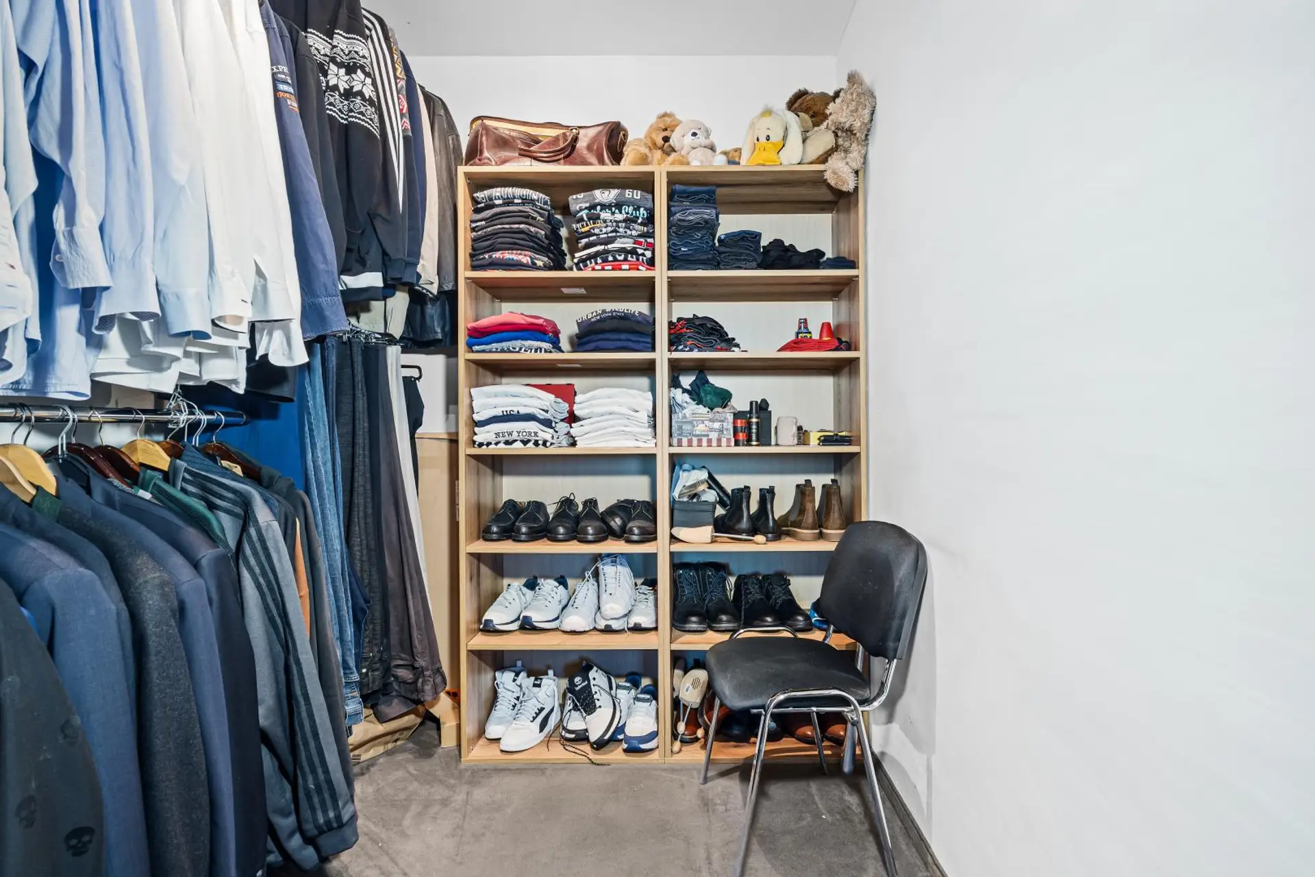 Die ursprüngliche Raumaufteilung wurde zugunsten eines großen offenen Wohn- und Küchenbereichs abgeändert, kann jedoch durch das Einziehen einer Zwischenwand mit geringem Aufwand wiederhergestellt werden, um wieder 2 Schlafräume zu erhalten. Weiters gibt es ein großes Badezimmer, ein separates WC sowie einen Abstellraum und einen begehbaren Kleiderschrank.