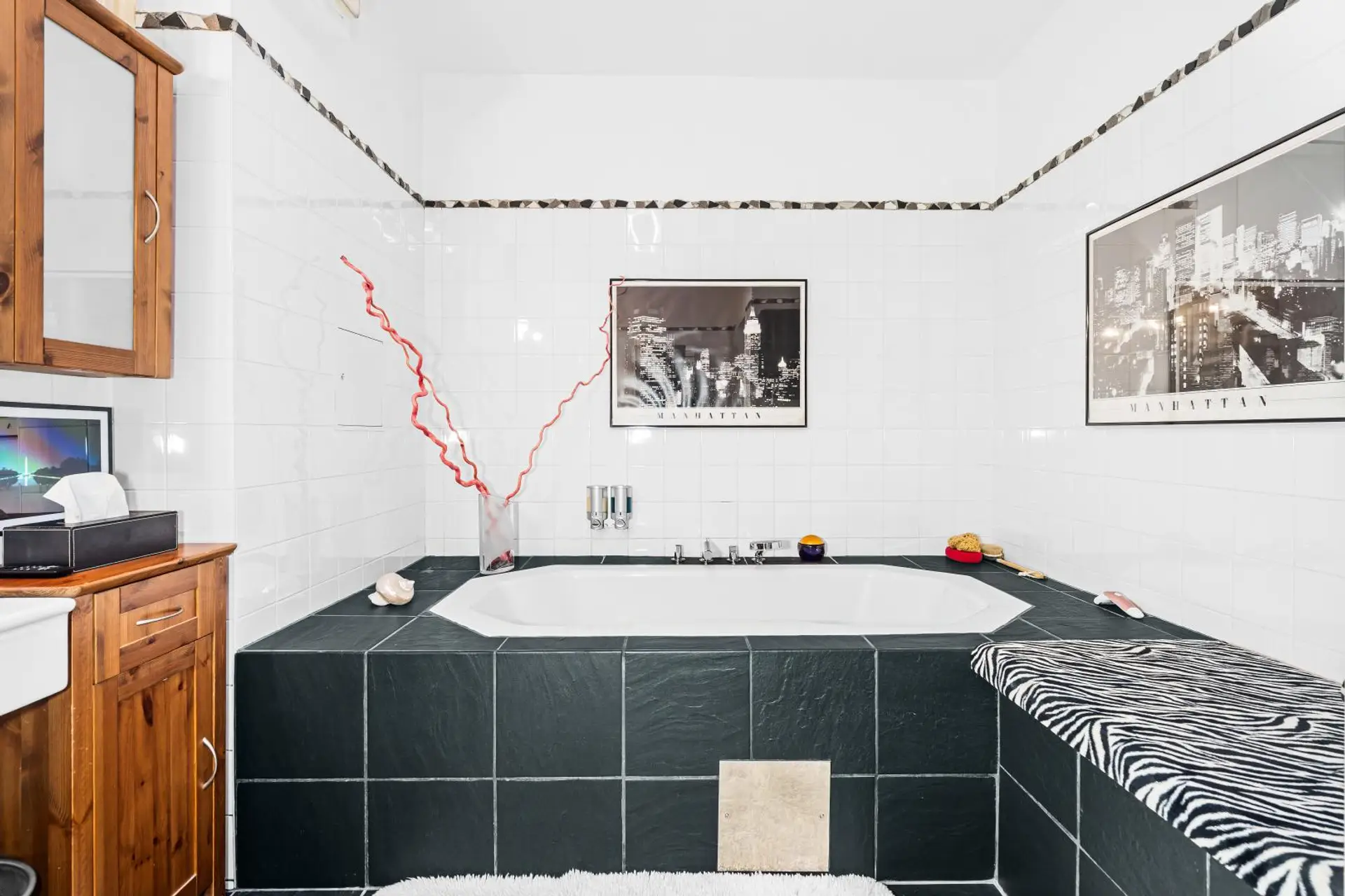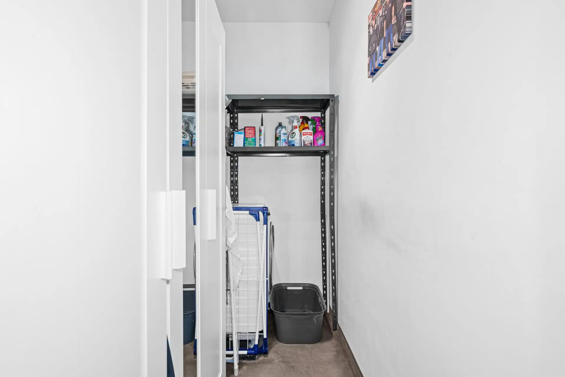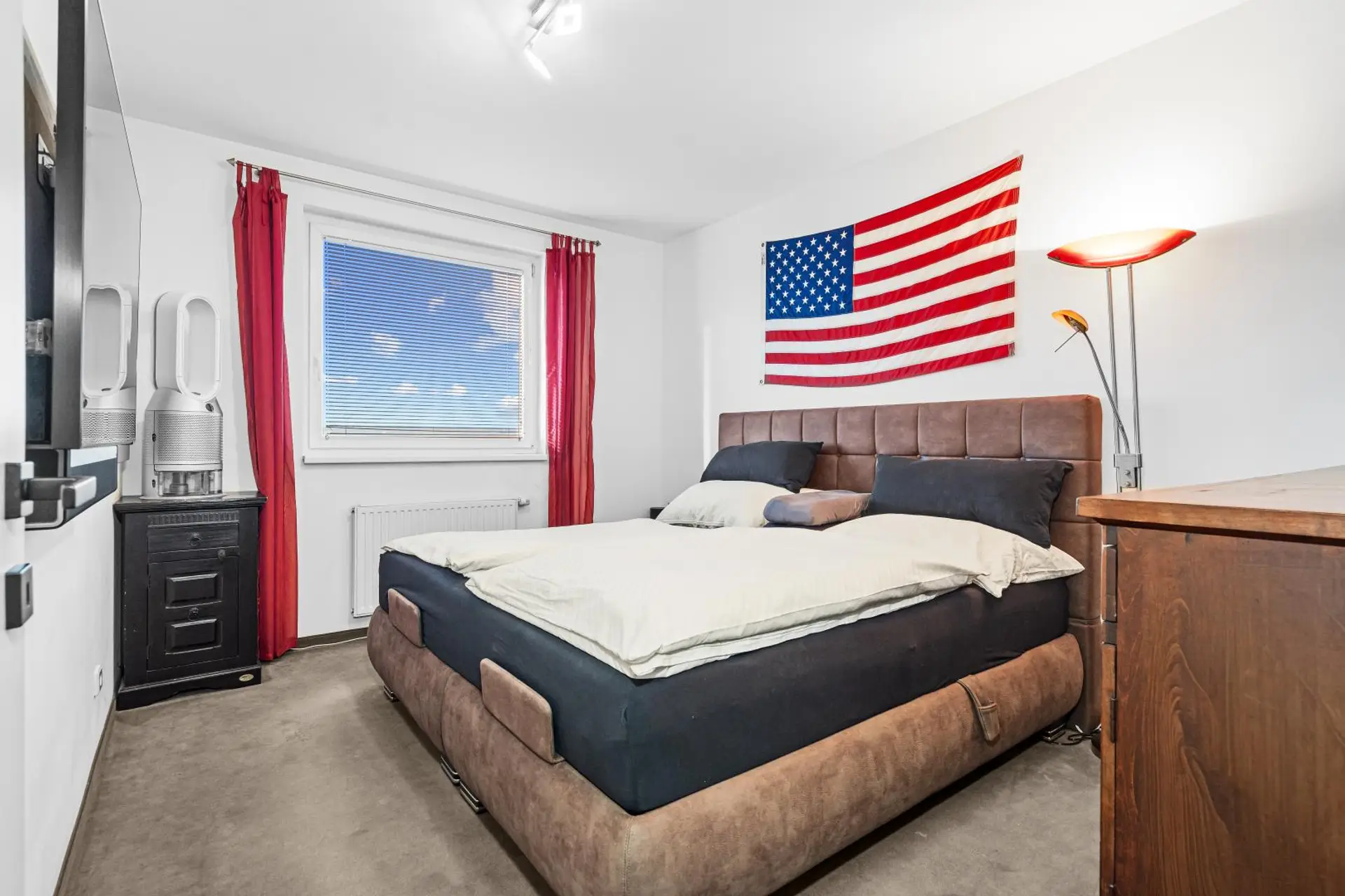 Die ursprüngliche Raumaufteilung wurde zugunsten eines großen offenen Wohn- und Küchenbereichs abgeändert, kann jedoch durch das Einziehen einer Zwischenwand mit geringem Aufwand wiederhergestellt werden, um wieder 2 Schlafräume zu erhalten. Weiters gibt es ein großes Badezimmer, ein separates WC sowie einen Abstellraum und einen begehbaren Kleiderschrank.