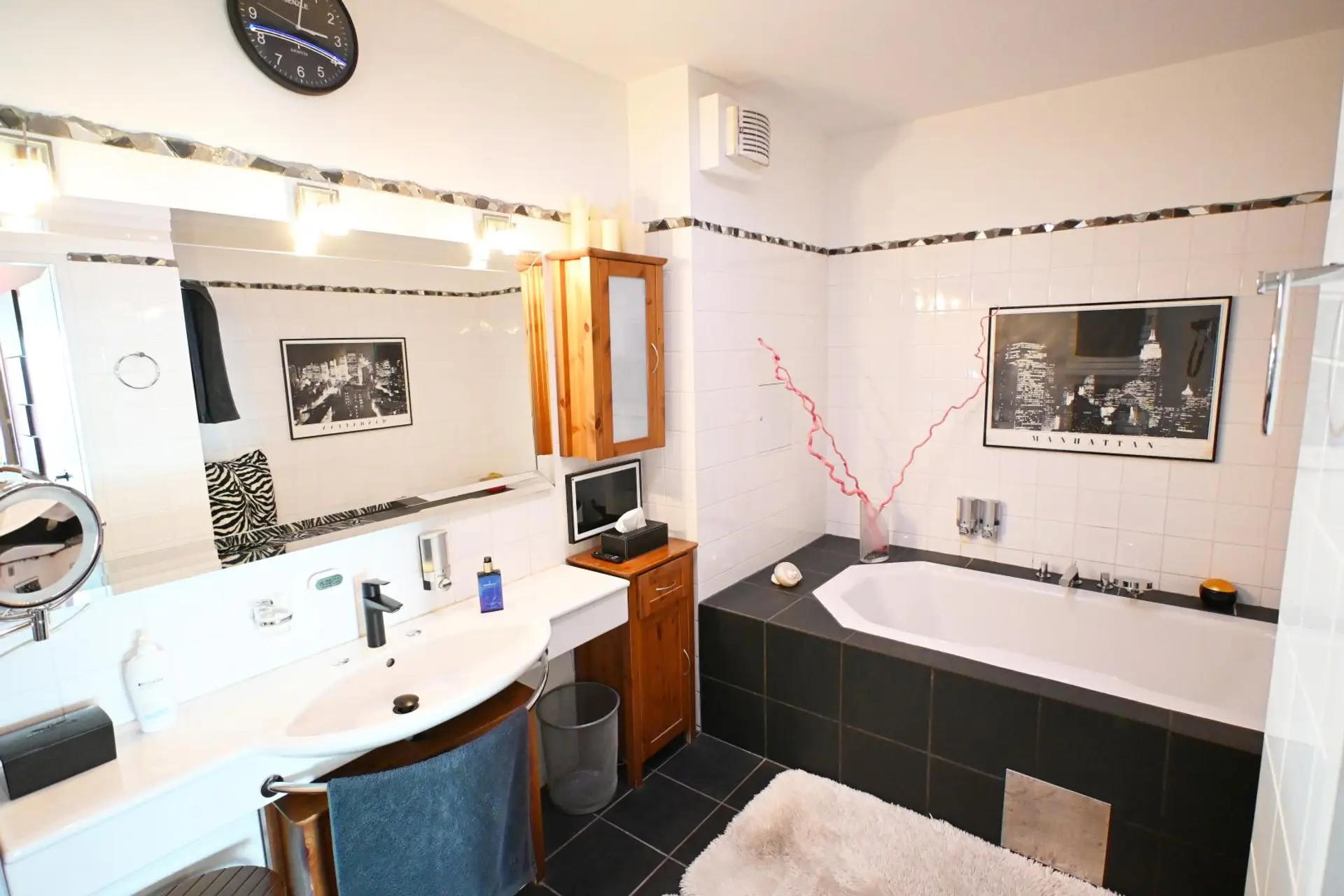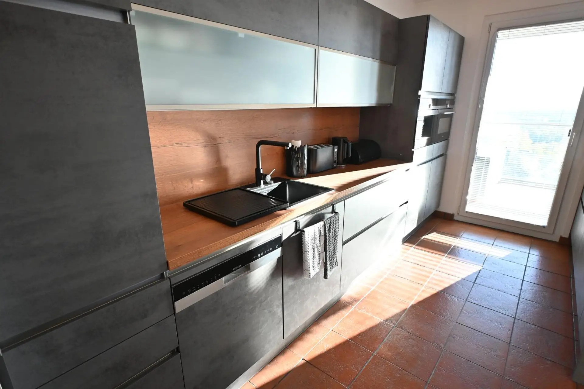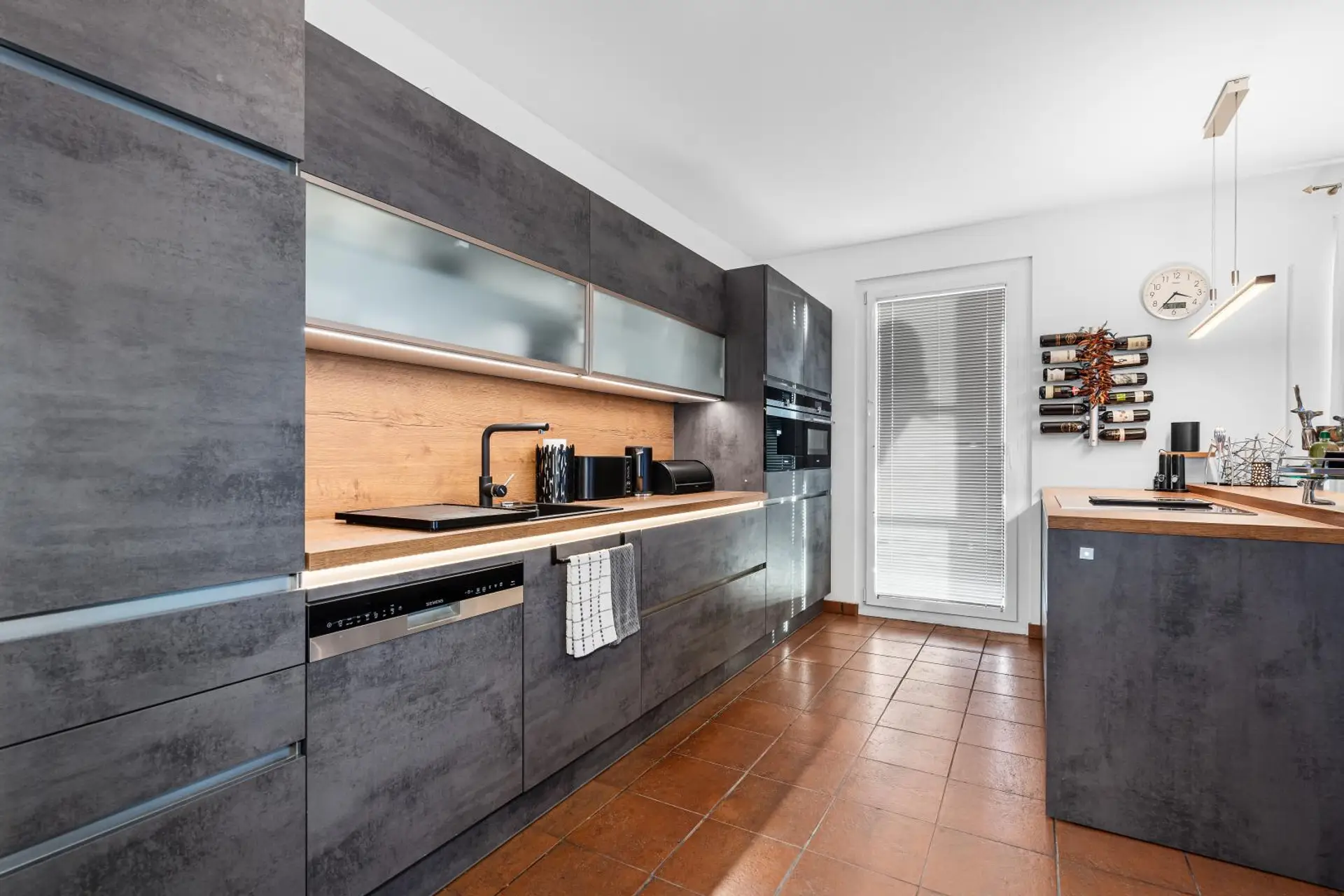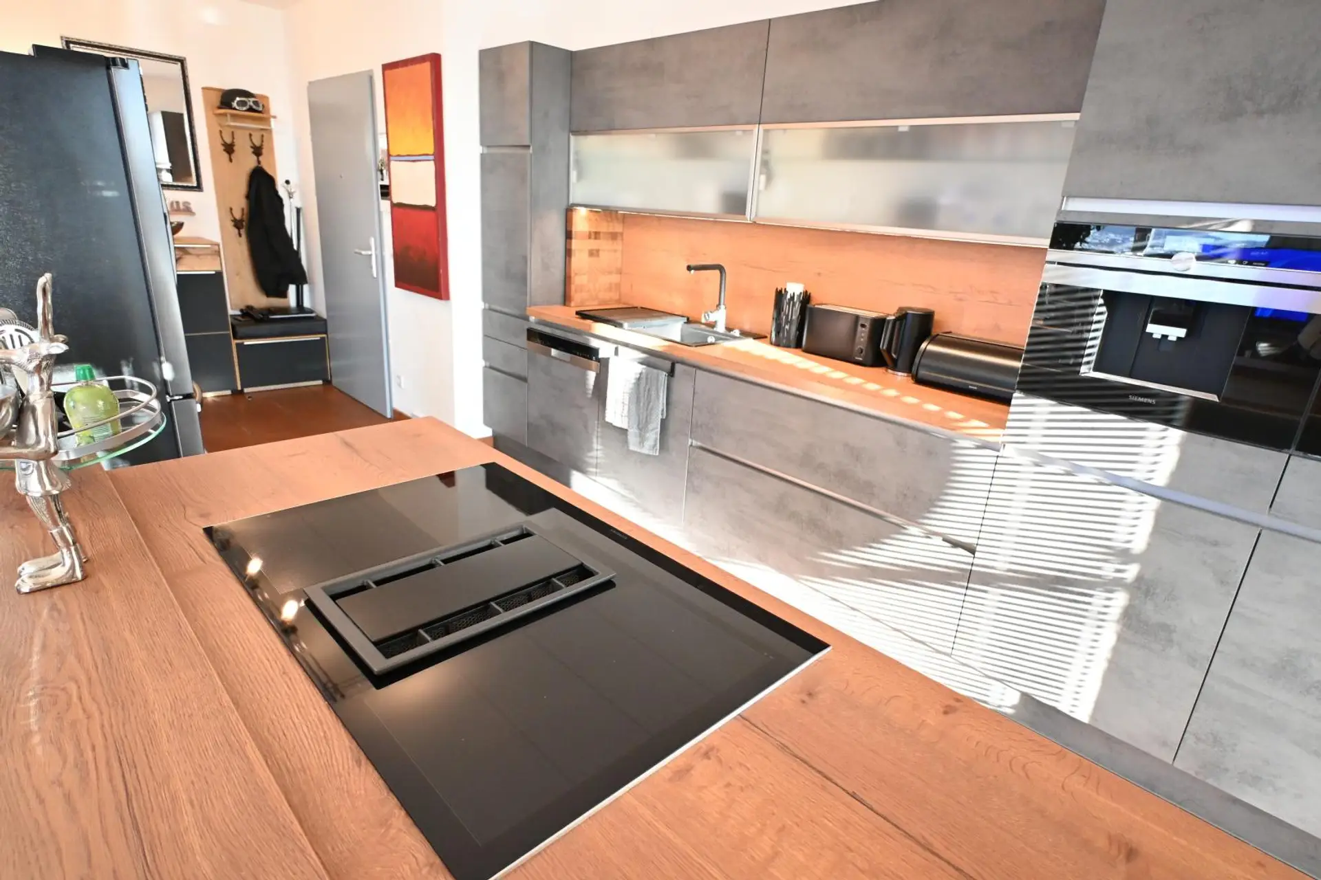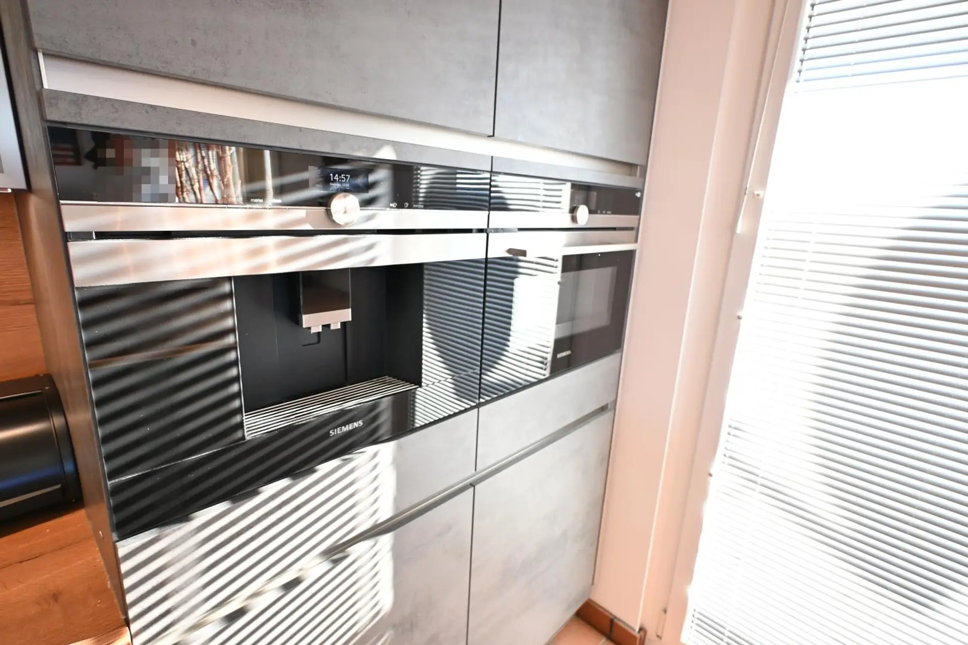 - Küche mit hochwertigen Siemens-Geräten (Backofen-Dampfgarer-Mikrowellen-Kombi, integrierte Kaffeemaschine, Geschirrspüler, Induktionskochfeld)