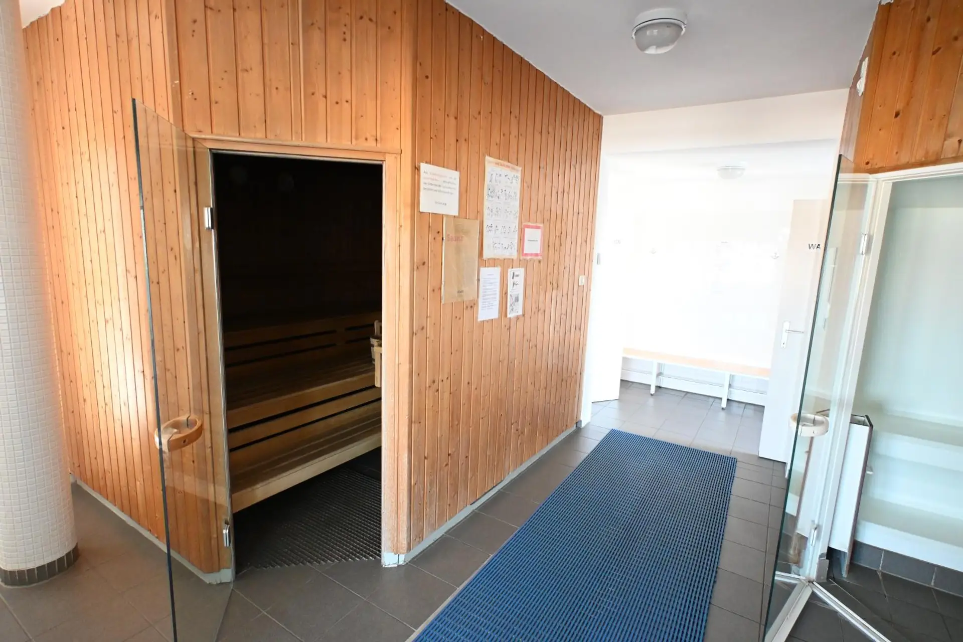 Exklusiv für die Bewohner des Hauses steht zusätzlich ein großer Panorama-Pool mit Liegebereich auf den Aussichtsterrassen zur Verfügung, weiters ein schöner Wellnessbereich mit Sauna und Dampfbad und ein gut ausgestatteter Fitnessraum.