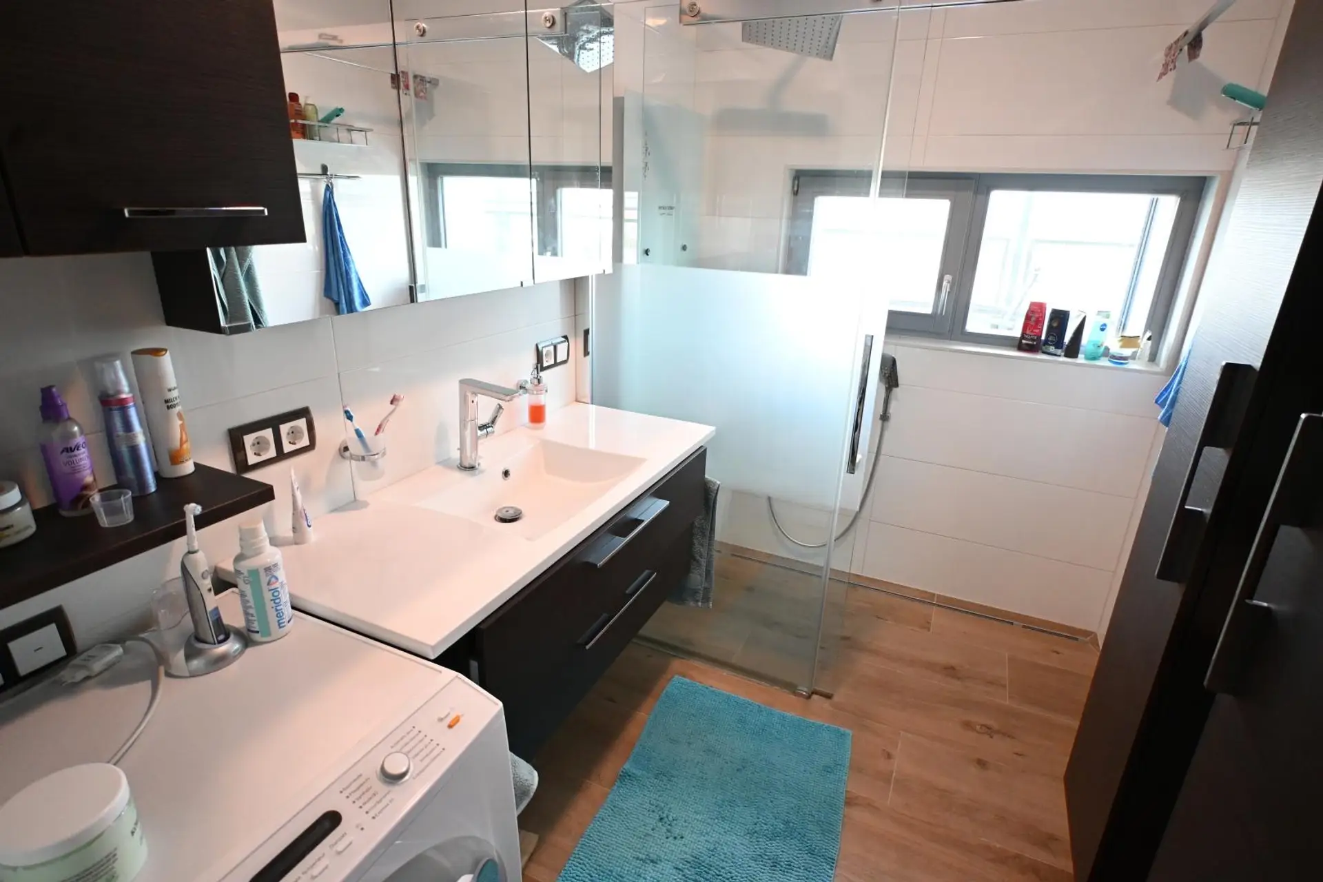 Ein Garagenplatz ist bereits inkludiert und ein Kellerabteil gehört ebenfalls zur Ausstattung. Der Zugang zur Wohnung ist barrierefrei und im Erdgeschoss steht ein Raum für Fahrräder und Kinderwägen zur Verfügung.