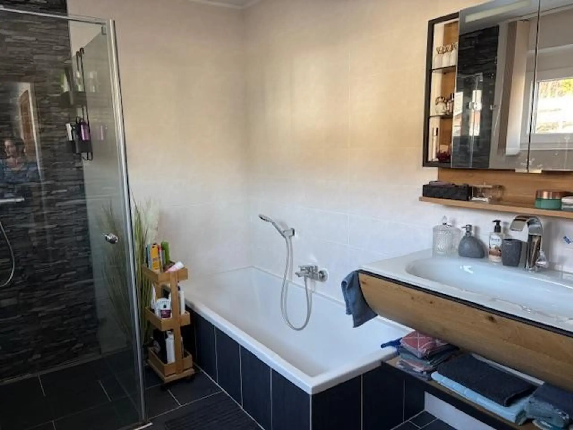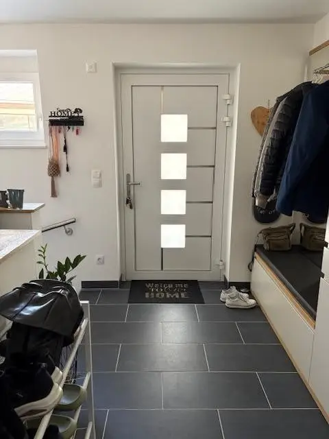 In diesem Doppelhaus (BJ 2023) ist alles fertig. Eingerichtet sind das Badezimmer und die Küche. Sie können sofort mit eigenen Möbeln einziehen. Der Eingang führt sie ins Vorzimmer mit Garderobe, 3 Zimmer, Bad mit Dusche, Wanne und Waschtisch und extra WC.