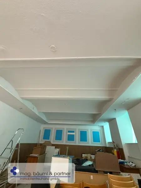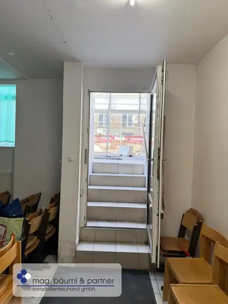 Über einige Stiegen gelangt man in den grossen Raum - der mit Tageslichtfenstern zur Wimbergergasse ausgestattet ist.