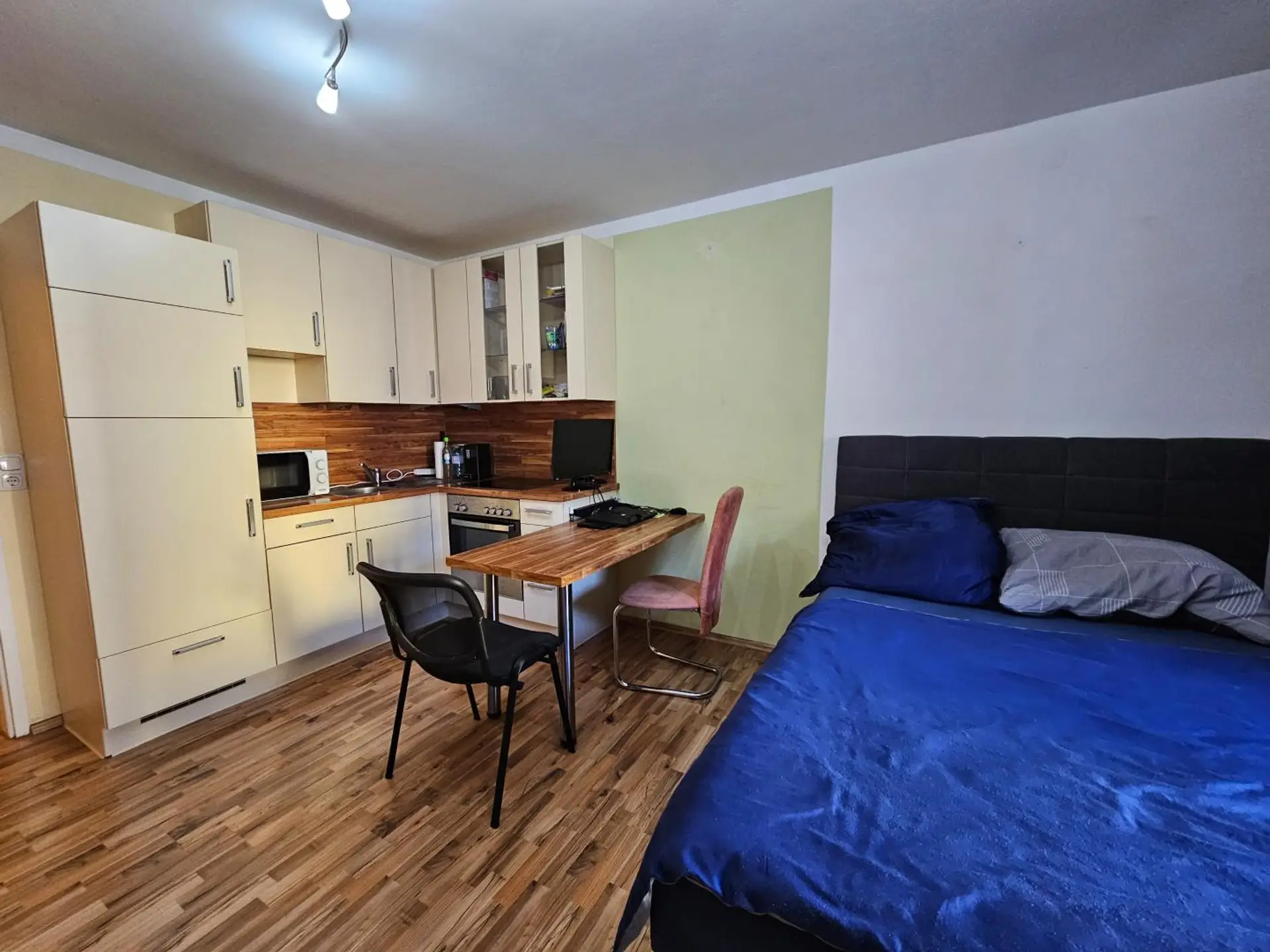 Die Wohnung verfügt über einen Wohn- und Schlafbereich mit integrierter Kochnische, ein Badezimmer mit WC, einen Vorraum sowie einen Balkon und ist teilweise möbliert. Ein eigenes Kellerabteil steht Ihnen zur Verfügung. Im Haus gibt es einen Lift und ein Parkplatz finden Sie vor dem Haus auf der allgemeinen Stellfläche. Zusätzlich profitieren Bewohner von einem hauseigenen Hallenbad.