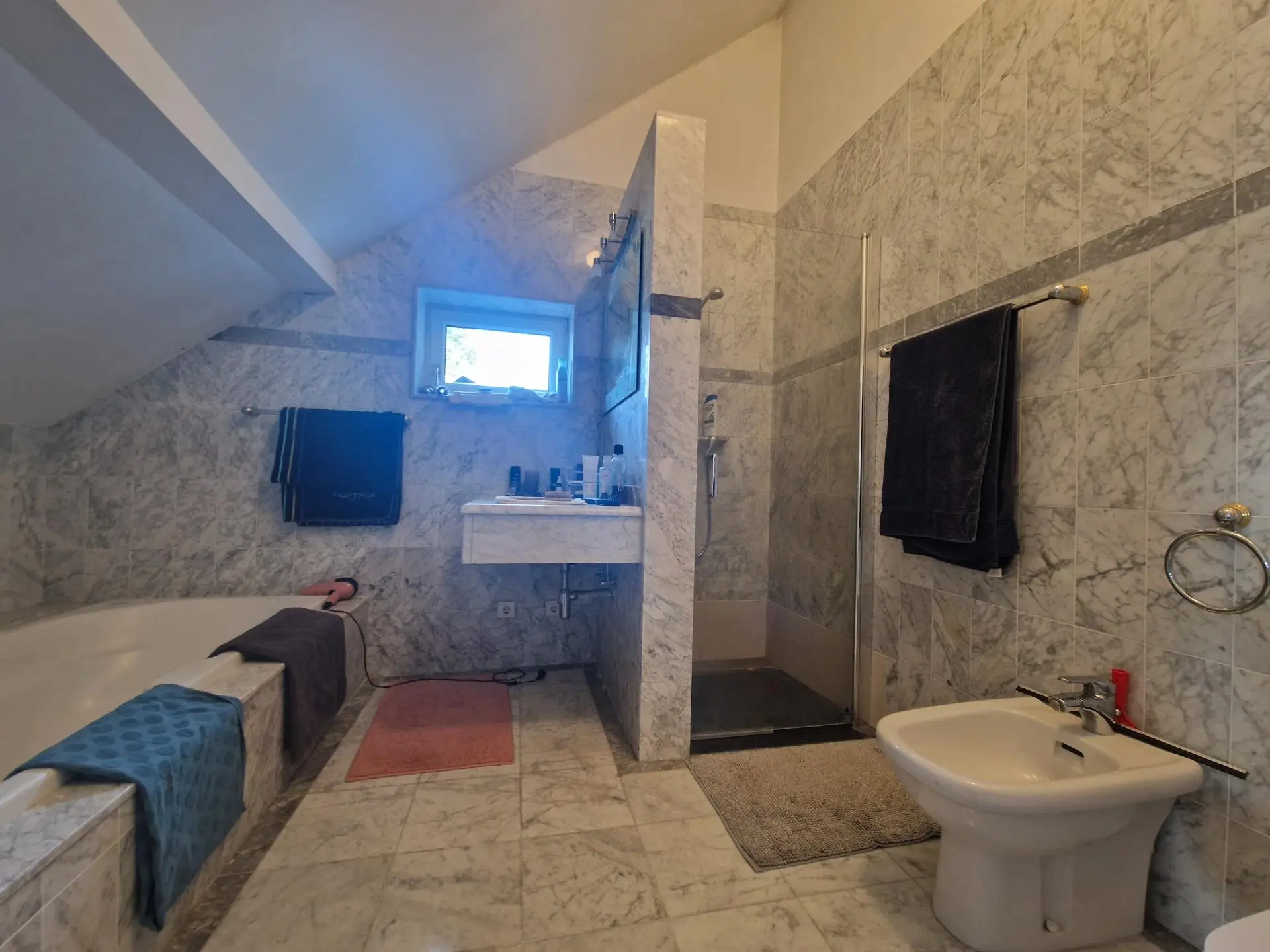 Im ausgebauten Dachgeschoss stehen vier weitere Zimmer, zwei davon als Durchgangszimmer mit eigenem Sanitärbereich in Form eines Badezimmers mit Dusche und WC zur Verfügung und runden das großzügige Gesamtpaket ab.