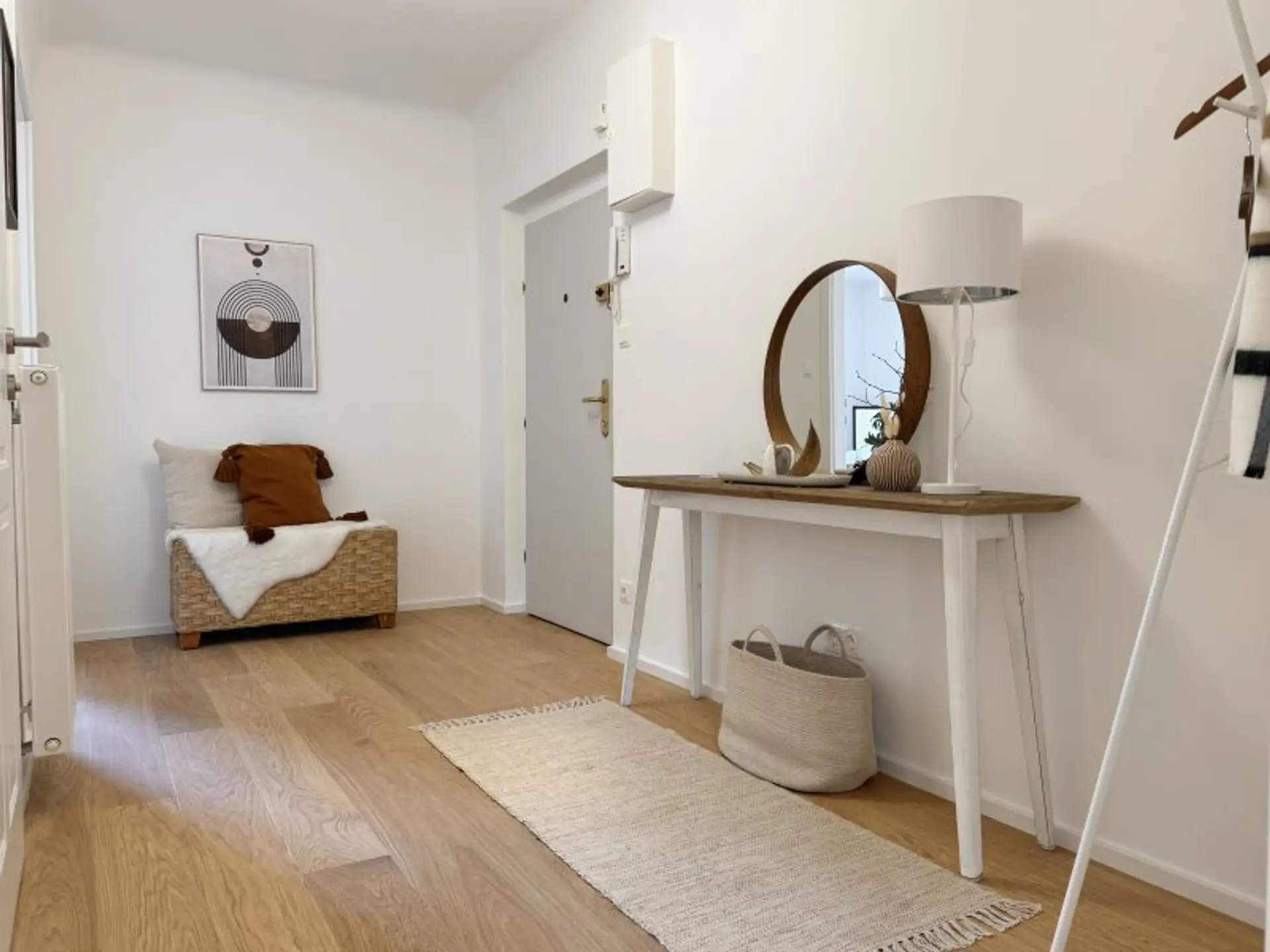 Beim Betreten gelangt man in einen einladenden Vorraum, der alle Räume miteinander verbindet.