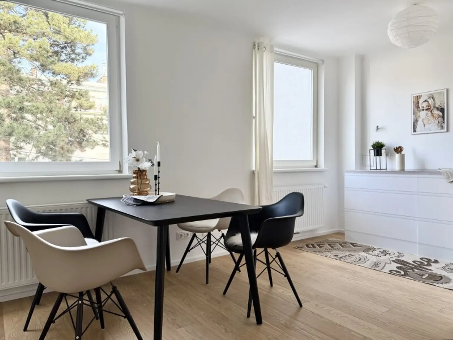 Der Wohnbereich bildet das Herzstück der Wohnung und bietet ausreichend Platz für Wohn- und Essbereich. Große Fenster sorgen für viel Tageslicht und eine angenehme Wohnatmosphäre.