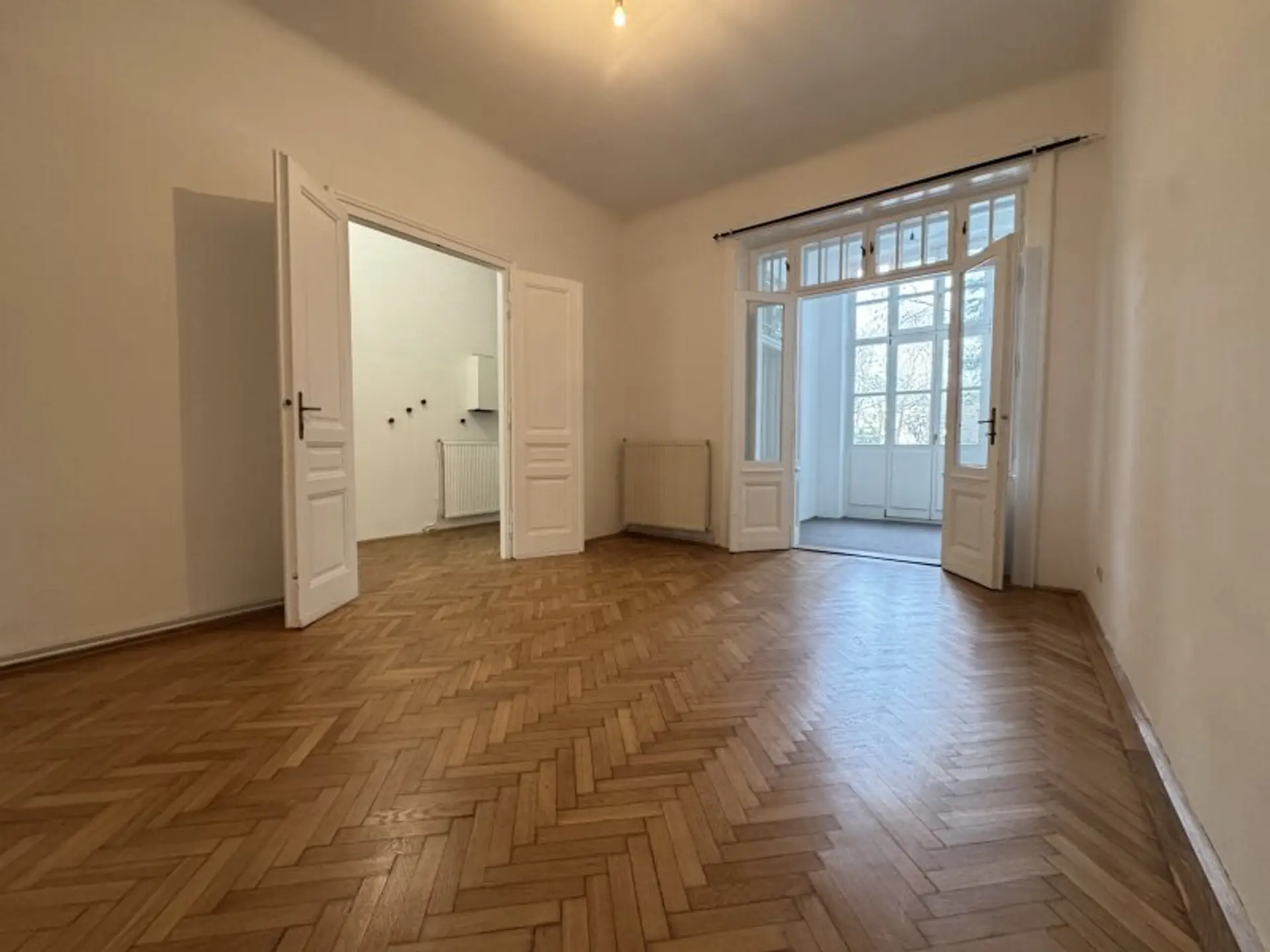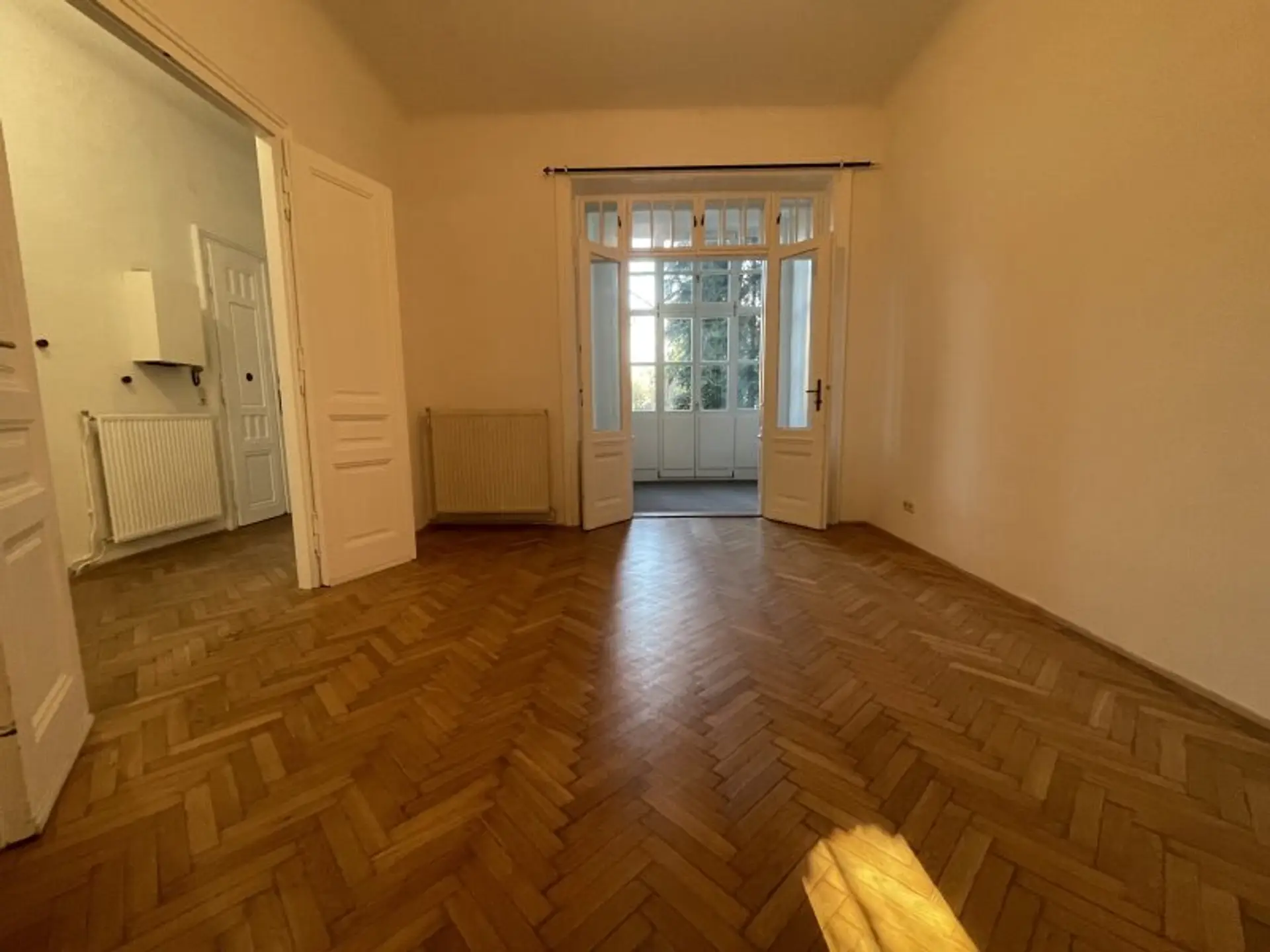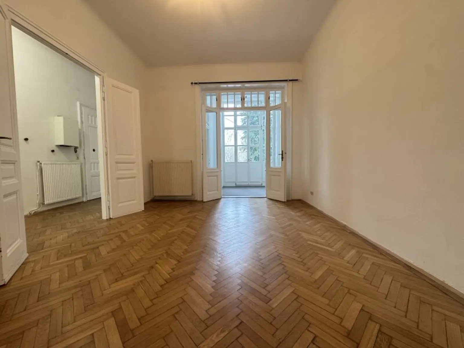 SCHÖNE, klassisches Altbau-Wohnung mit sehr viel FLAIR & AMBIENTE und großem GEMEINSCHAFTSGARTEN / 86,77 m² Fläche / geräumiges Vorzimmer + SONNIGES Wohnzimmer mit rund 26m² + großes, gartenseitig orientiertes Schlafzimmer mit VERANDA, zusammen rund 26m² + ein Kabinett bzw. kleines Zimmer mit rund 8,50m² + ausgestattete Küche mit Abstellraum, zusammen rund 11m² + Badezimmer mit Dusche + ein WC separat.
