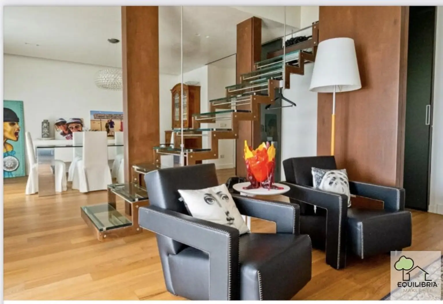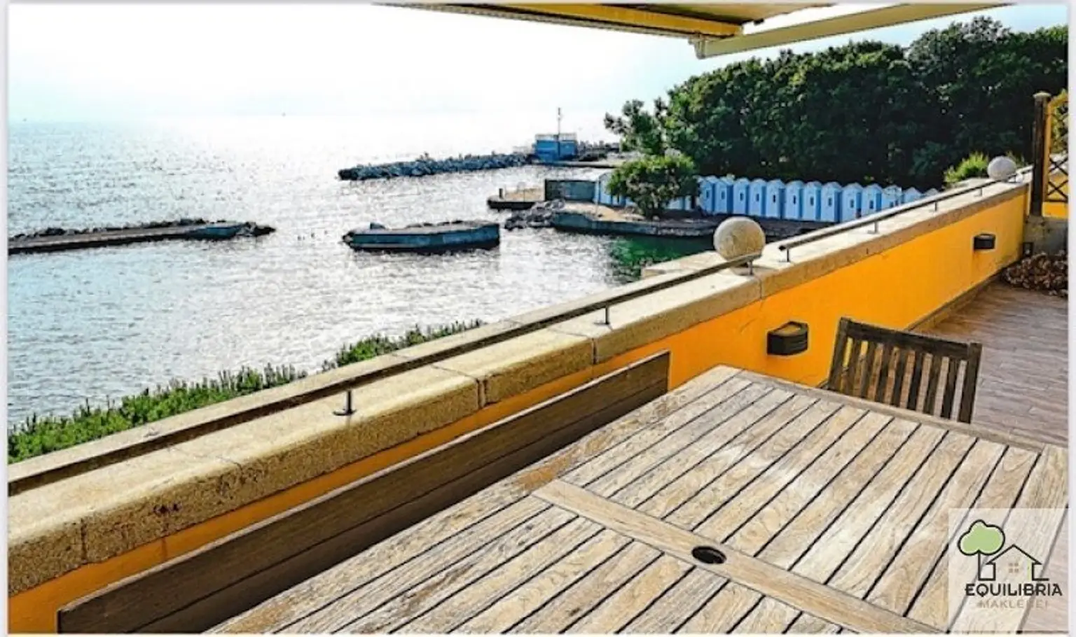 Die Wohnung hat 150 m2 Wohnfläche. Auf der ersten Ebene sind Küche, Speisekammer, 3 Bäder, 2 Zimmer und ein wunderbarer Salon mit Kamin und Fernseher. Zum Meer hin gibt es den Zugang über eine Stiege. Vom Wohnzimmer aus kann man über eine wunderschöne Treppe auf die 2. Ebene gelangen, welche als Außenbereich mit einer riesigen Terrasse konzipiert ist.