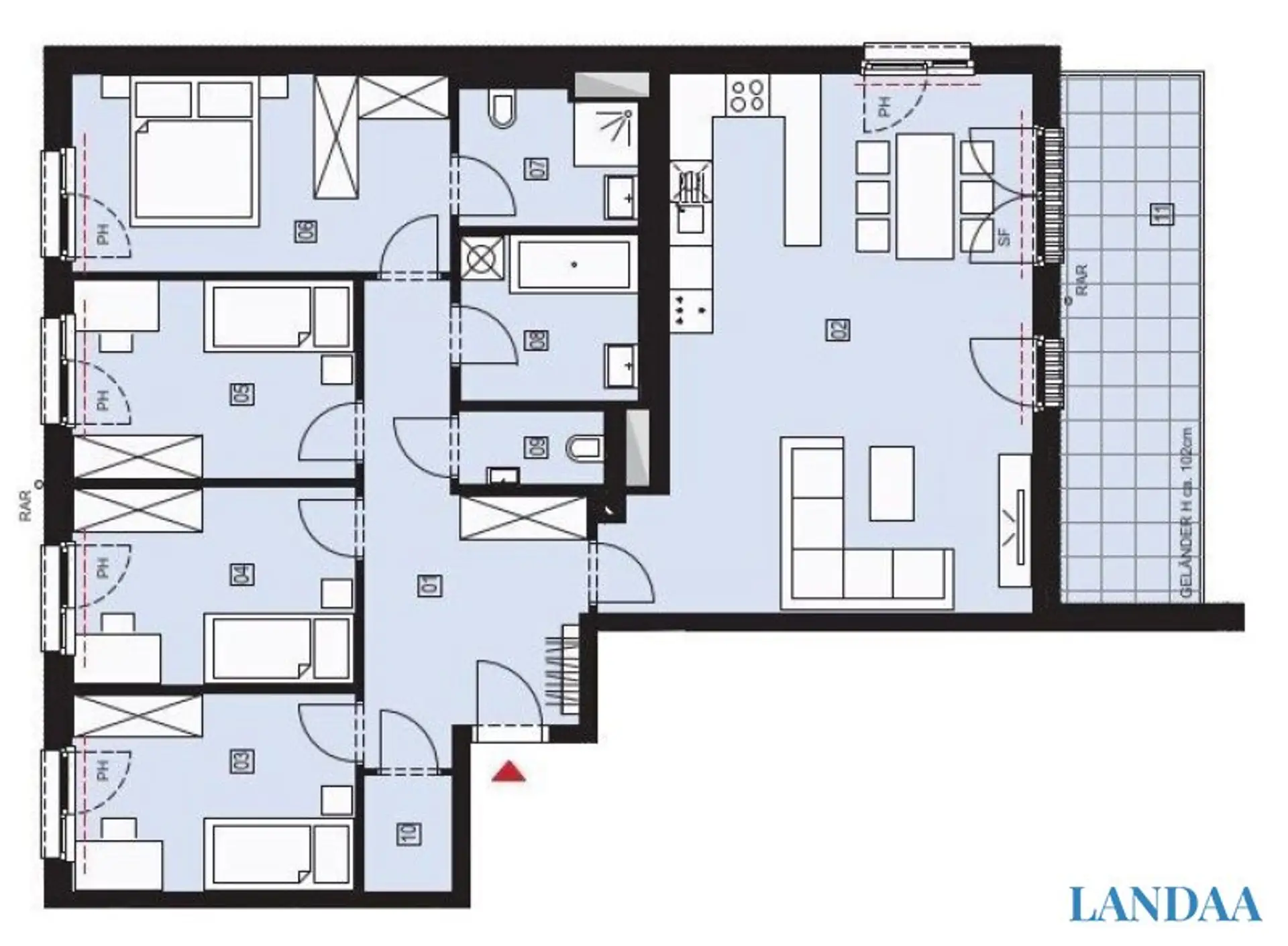 Diese großzügige 5-Zimmer-Wohnung mit ca. 116 m² Wohnfläche bietet perfekt aufgeteilter Raum für große und kleine Familien, die mehrere Zimmer flexibel nutzen möchten – sei es als Kinderzimmer, Gästezimmer oder ruhiges Homeoffice. Durch die klar strukturierte Grundrissgestaltung sind alle Zimmer separat begehbar und ermöglichen eine optimale Privatsphäre für jedes Familienmitglied.