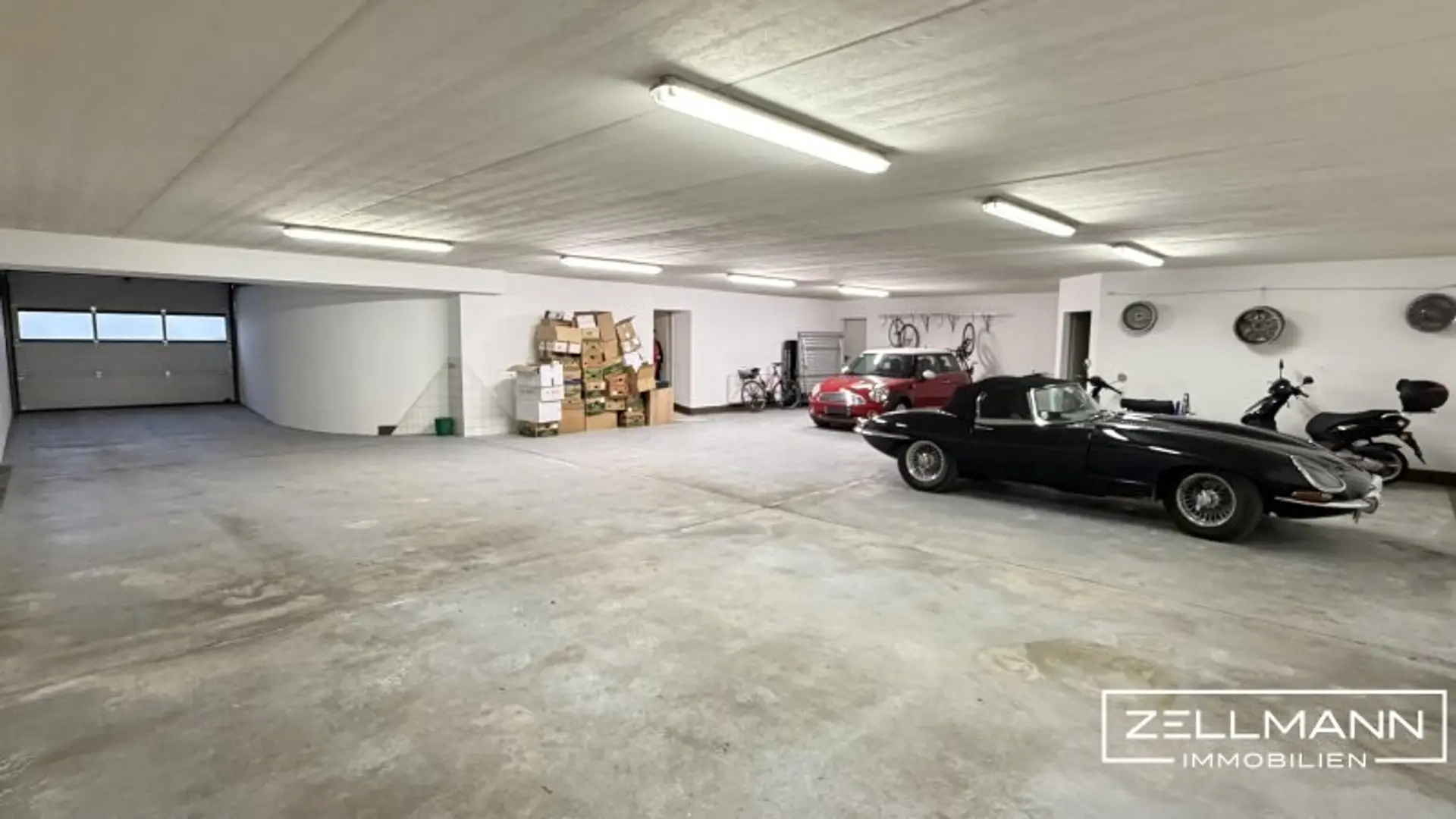 Ein herausragendes Merkmal dieser Liegenschaft ist die außergewöhnlich großzügige Garage mit einer Fläche von rund 61,7 m², die Platz für bis zu sechs Fahrzeuge bietet.