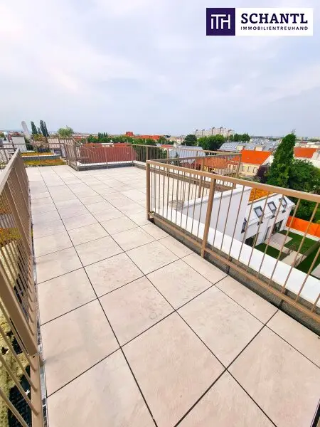 Ihre neue Traumwohnung wird Sie restlos begeistern und teilt sich einen geräumigen Vorraum mit Platz für eine Garderobe, einen riesigen und nahezu zur Gänze uneinsichtigen Wohn-Essbereich mit Zugang zu 2 Terrassen, 4 getrennt begehbare Schlafzimmer, wobei eines einen eigenen Schrankraum besitzt, 2 großzügige Bäder mit Fenster, Dusche, Badewanne und WC, ein separates WC, einen praktischen und super großen Abstellraum sowie das Highlight der Wohnung - eine riesige Dachterrasse mit einem 360Grad Rundumblick.