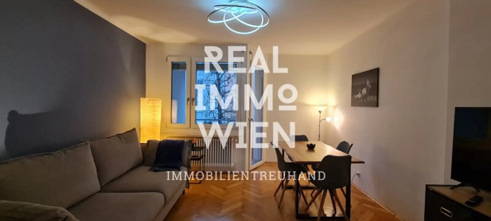 Die stilvolle Wohnung ist aufgeteilt in Vorraum, Wohnzimmer, Küche, Badezimmer mit separatem WC, 2 Schlafzimmer und Balkon.