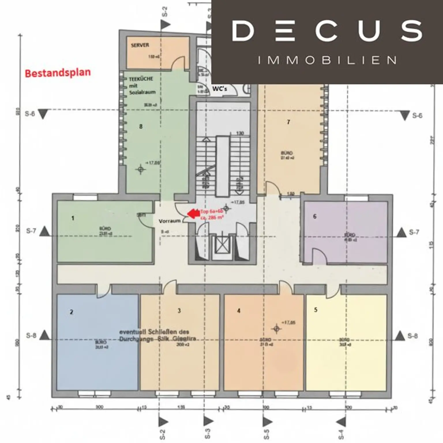 6a+6b: 286,23 m² 18,50 € - Die Betriebskosten verstehen sich als zirka Angaben.