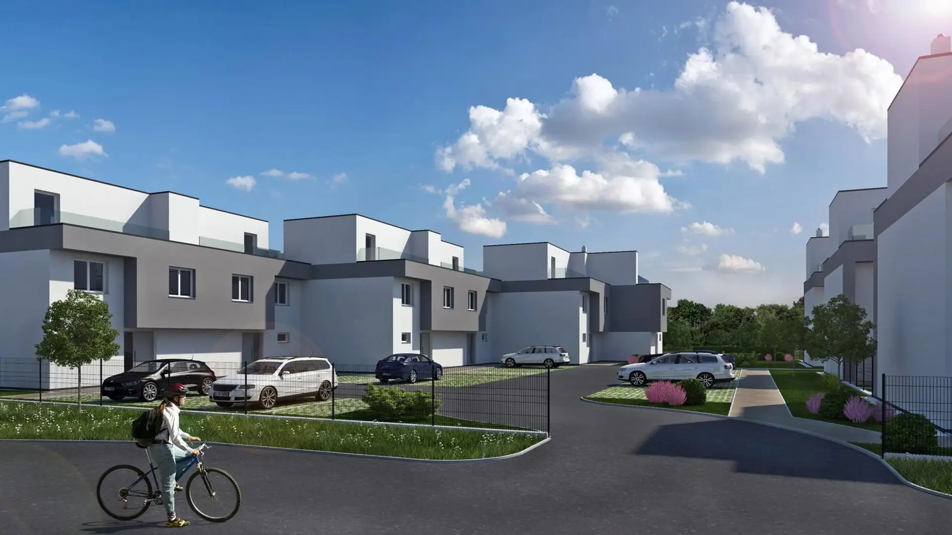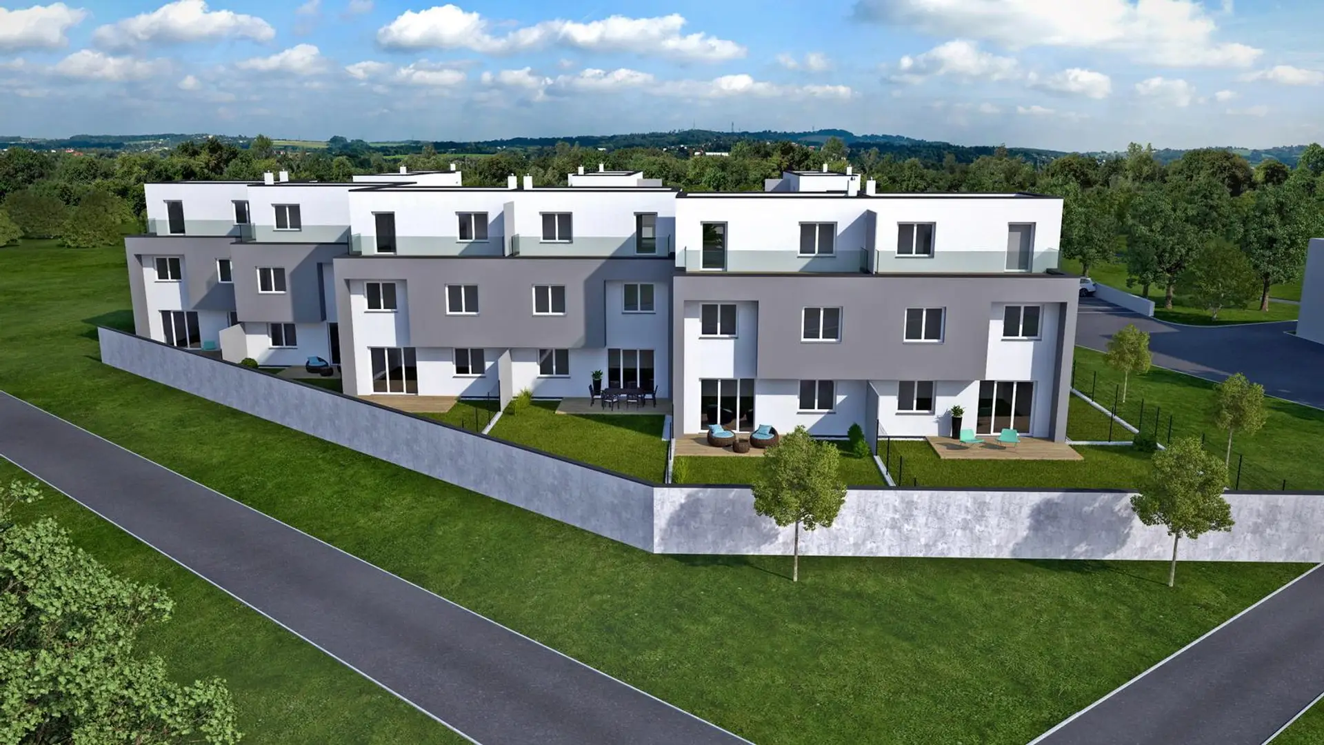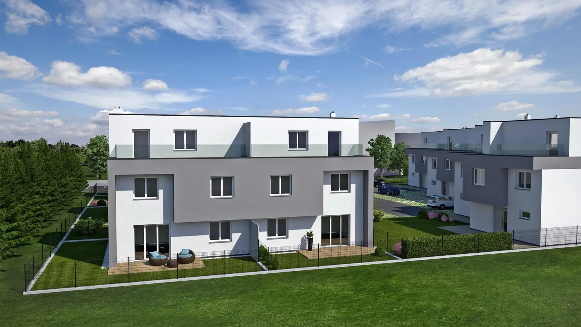 In Seyring in der niederösterreichischen Gemeinde Gerasdorf entsteht eine neue, familienfreundliche Doppelhausanlage. Jedes der 12 Eigentum Reihenhäuser mit jeweils 2 PKW-Stellplätzen hat eine Wohnfläche um 140 m2 und eine Gartenfläche bis zu 170 m2. Die Wohnfläche der Häuser variiert je nach Konfiguration zwischen 136 m2 und 143 m2 Wohnfläche.