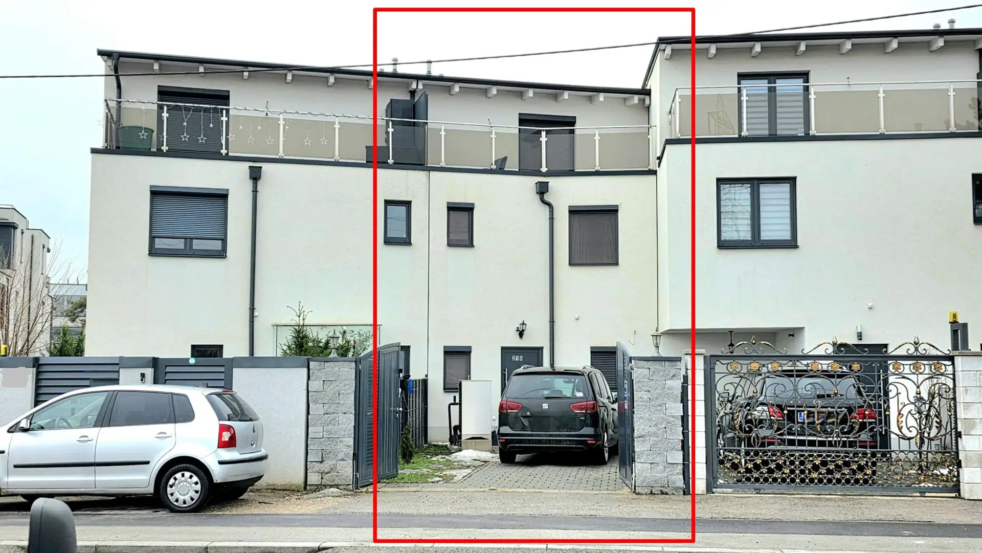 1-2 Parkplätze, 5 Zimmer, 2 Wc´s, 1 Bad, Küche, Luft/Wärmepumpe, Fußbodenheizung, 3fach Verglasung, Aussenrollos bei allen Fenstern, Hochglanzlandhausküche, 3x Freiflächen – 1 Terrasse Garten, 2x Dachterrassen / ges. ca. 45 m²