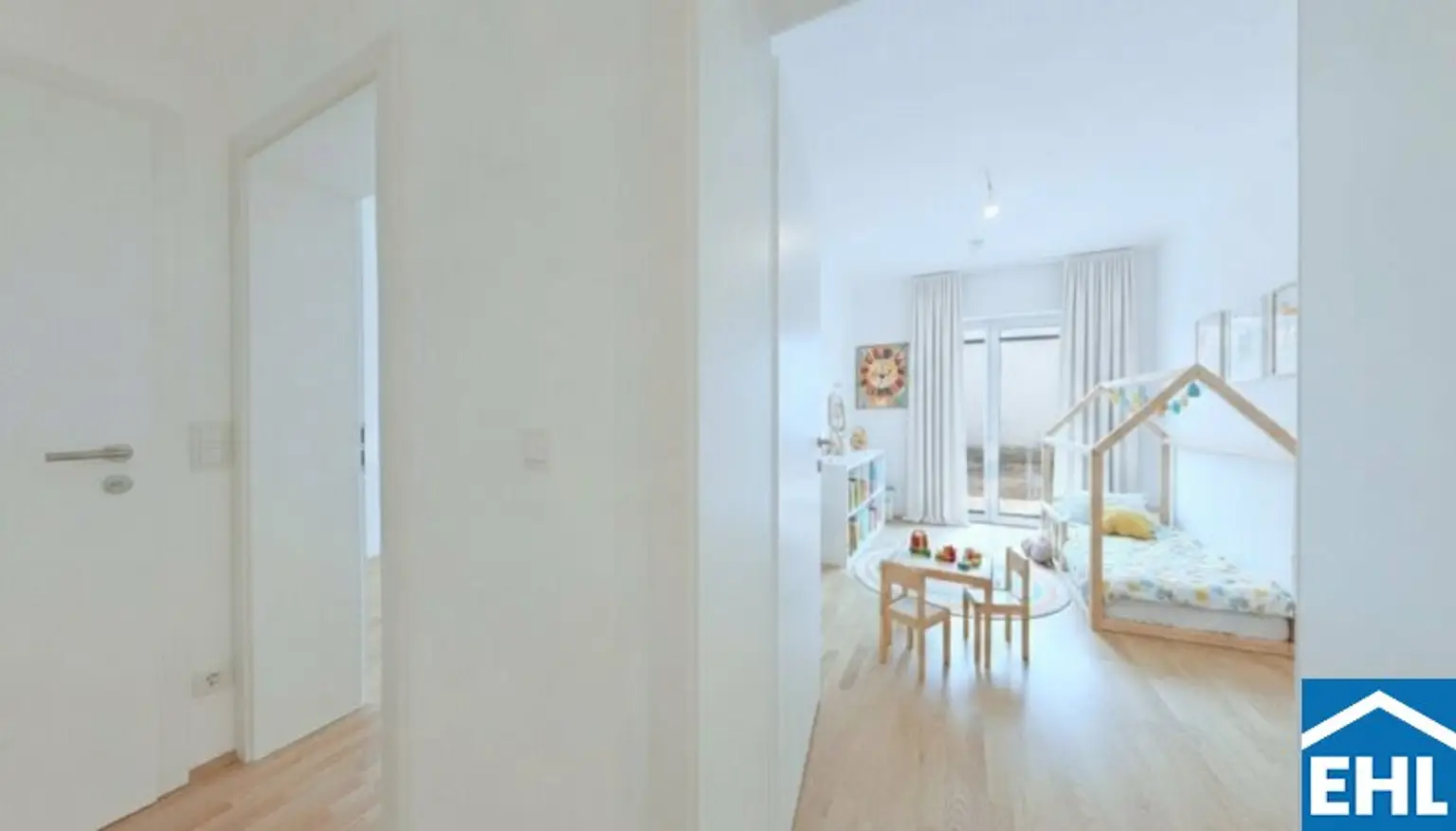 Drei helle, nach Osten ausgerichtete Schlafzimmer bieten direkten Zugang zum eigenen Garten und schaffen eine lichtdurchflutete, freundliche Wohnatmosphäre – perfekt für entspannte Morgenstunden und erholsame Rückzugsmöglichkeiten.