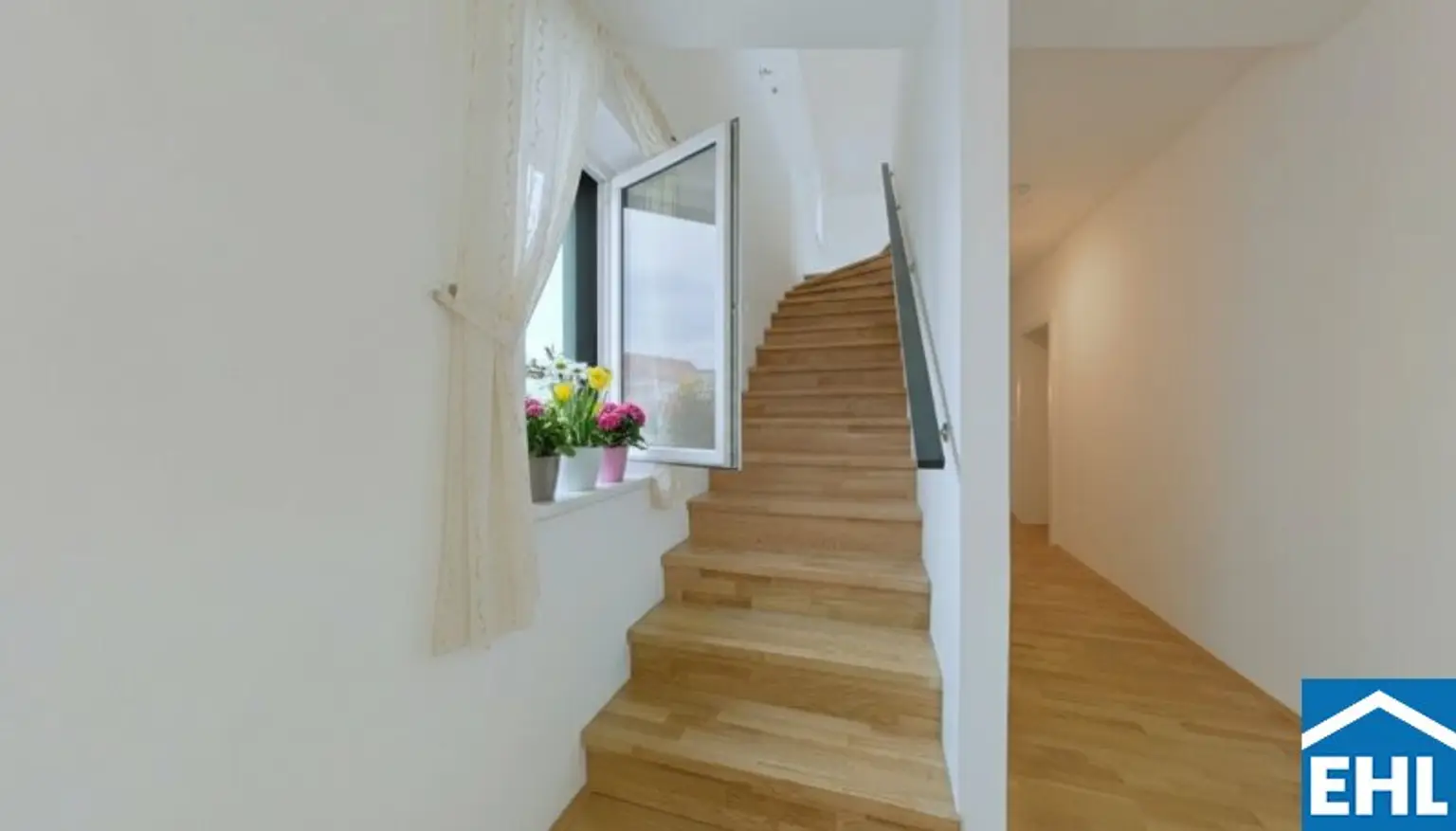 Die ruhige, grüne Umgebung punktet mit Naherholungsgebieten, Parks und guter öffentlicher Anbindung nach Wien. Schulen, Kindergärten und Einkaufsmöglichkeiten sind schnell erreichbar – ideal für den Alltag mit Kindern.