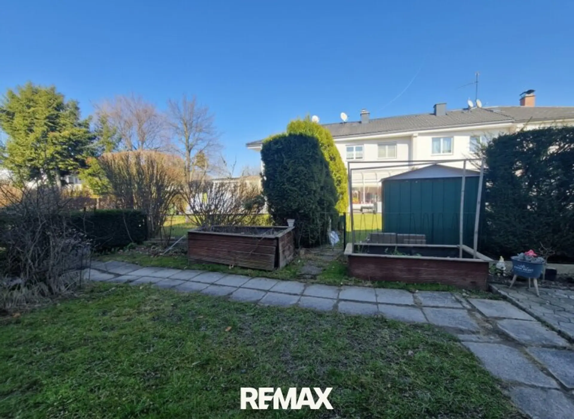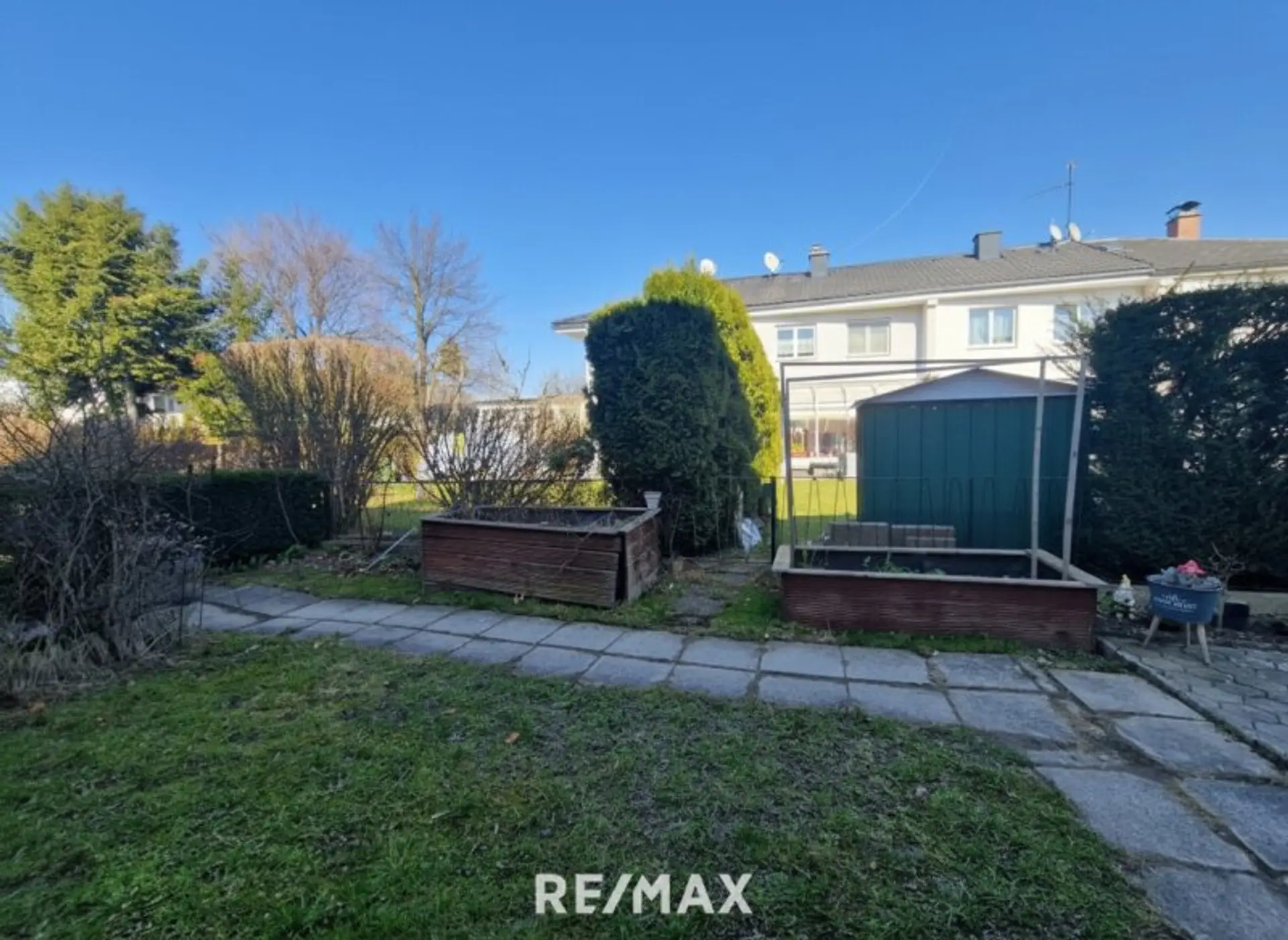 Die überdachte, verflieste Terrasse lädt zu gemütlichen Stunden im Freien ein. Der kleine, gepflegte Garten bietet ausreichend Platz zum Entspannen, ohne dabei viel Pflegeaufwand zu verursachen.