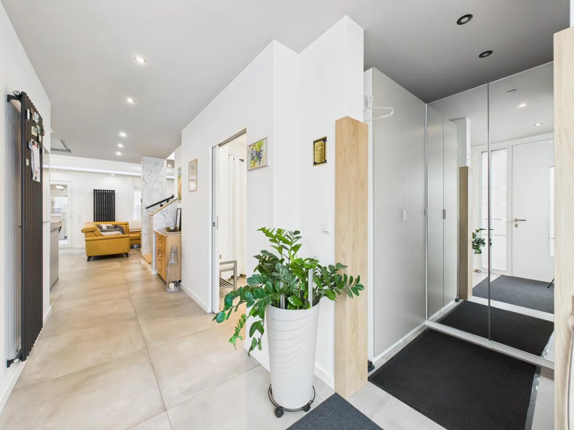 Die durchdachte Raumaufteilung umfasst 3 helle Schlafzimmer, mehrere stilvoll gestaltete Sanitärbereiche sowie repräsentative Wohnräume. 3-fach verglaste Kunststofffenster mit Außenrollos sorgen für optimale Wärme- und Schalldämmung sowie ein angenehmes Raumklima.
