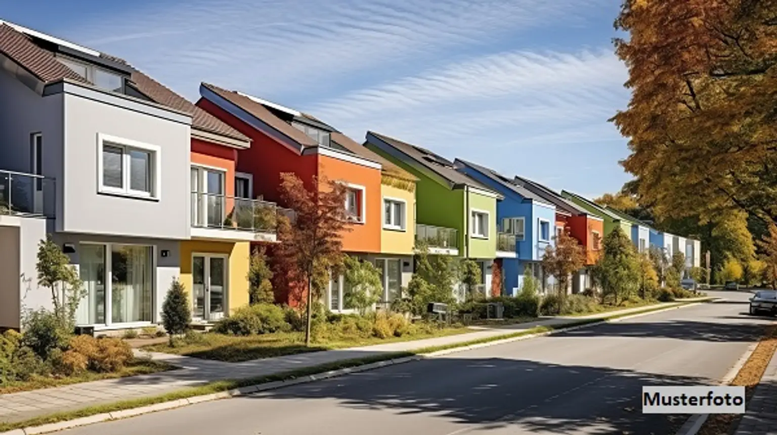 Reihenhausanlage, bestehend aus 2 Doppelhäusern (1, 2, 4 und 5) und einem Einfamilienhaus (Haus 3), 2-geschossig, unterkellert, teilausgeb. DG, 632/466 m² Wfl/Nfl, mit 10 Pkw-Stellplätzen und Garten, Bj. 2018 - Raumaufteilung je Haus: EG: Vorraum, Abstellraum, Dusche/WC, Küche Wohnzimmer, Terrasse; Vorraum, Bad/WC, 3 Zimmer; DG (Haus 1 bis 3): Zimmer, Dachterrasse - guter Zustand