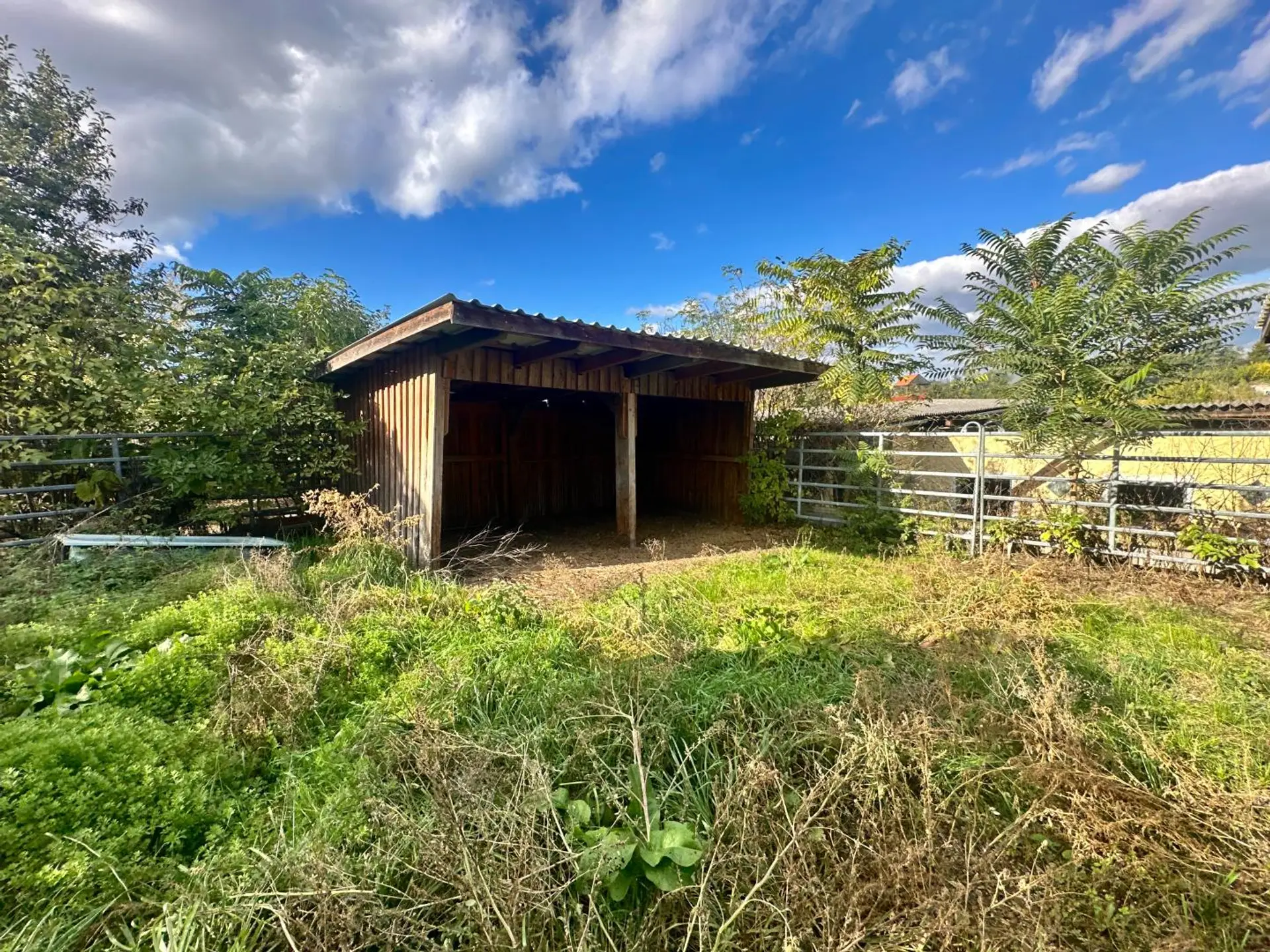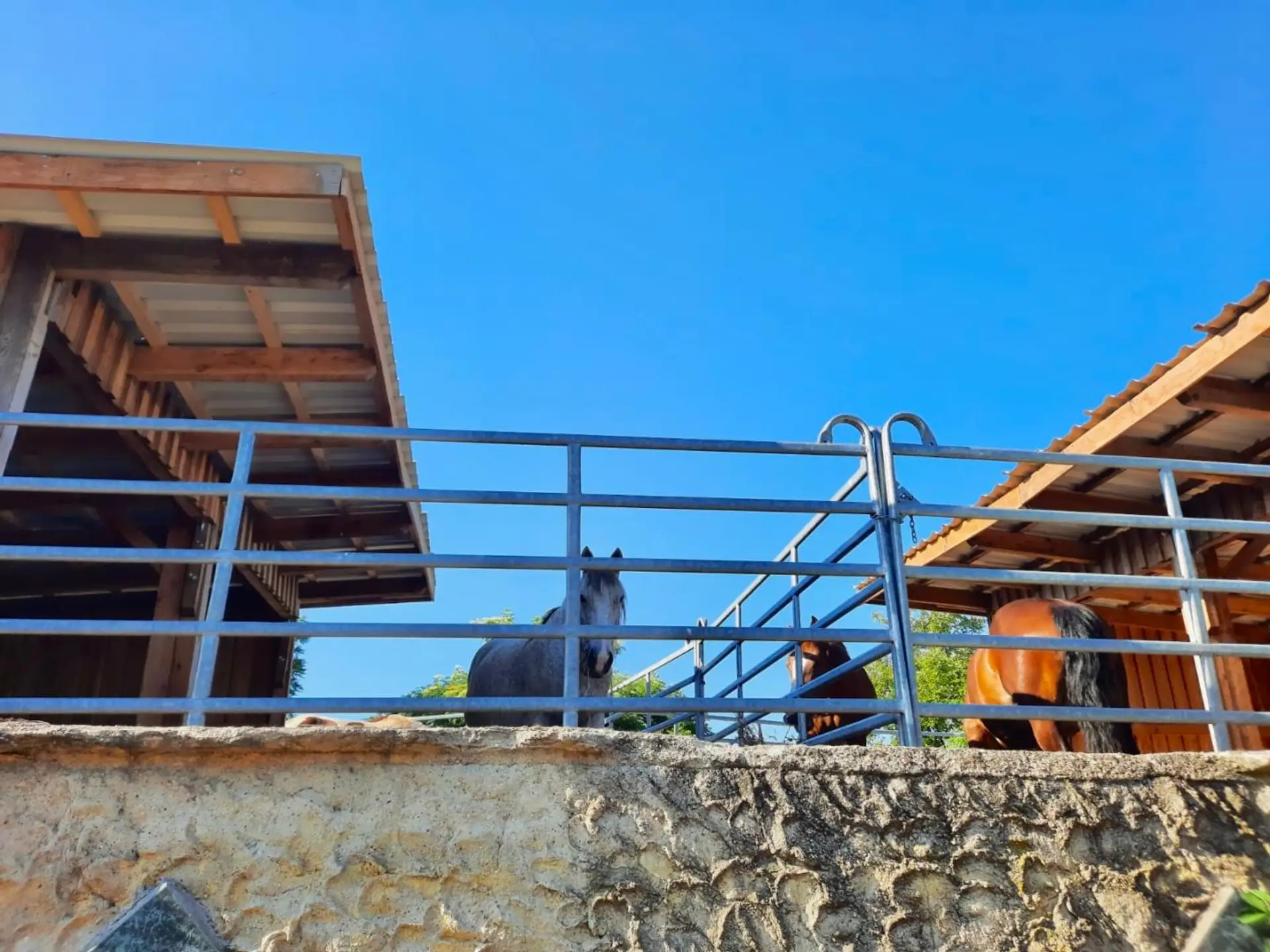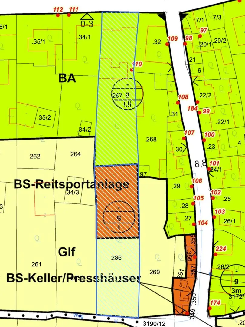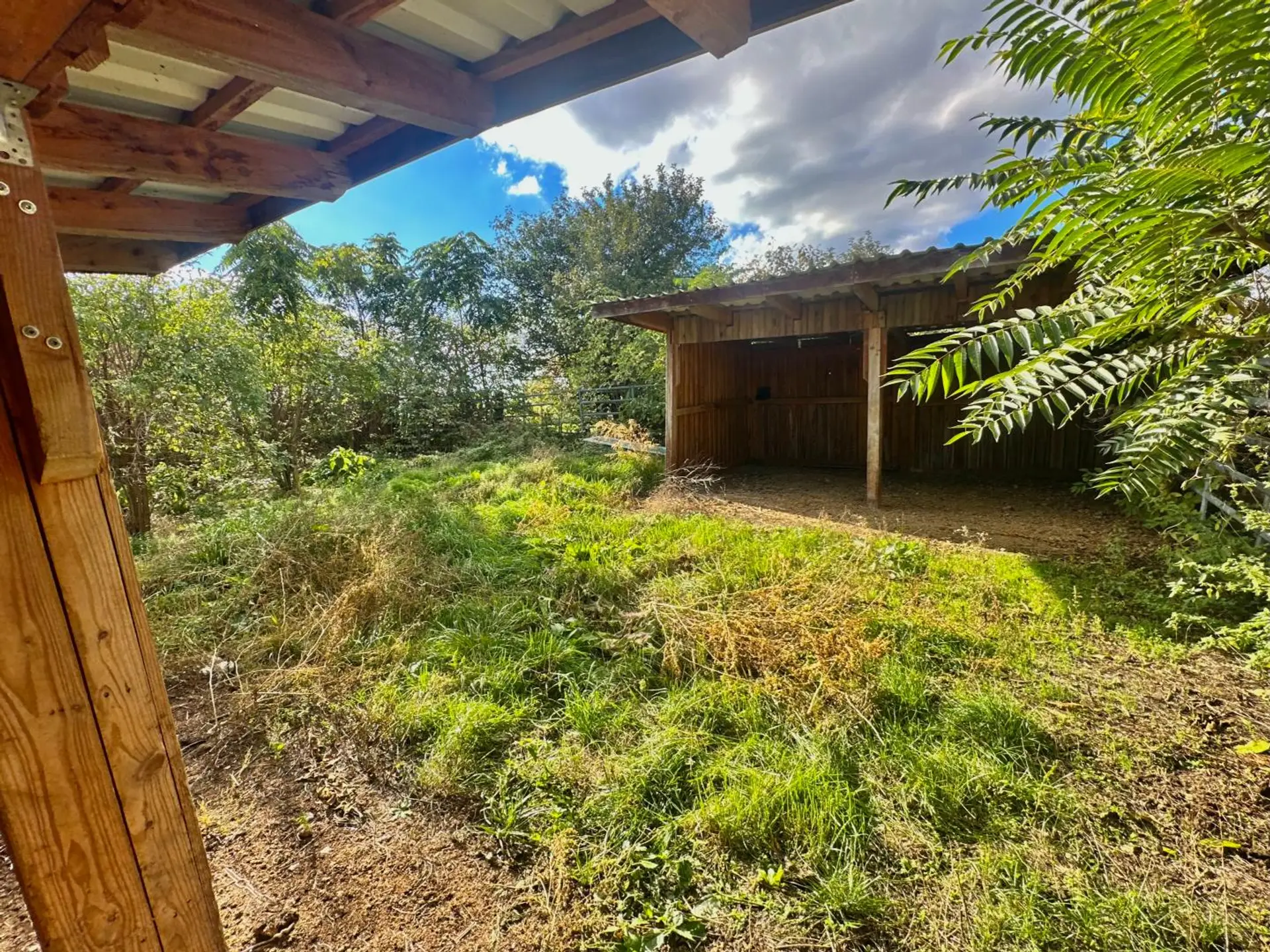 Das ca. 3.769 m² große, vollständig eingezäunte Grundstück verfügt über zwei Zufahrten (Nord/Süd) und ist teilweise als Reitsportanlage gewidmet.