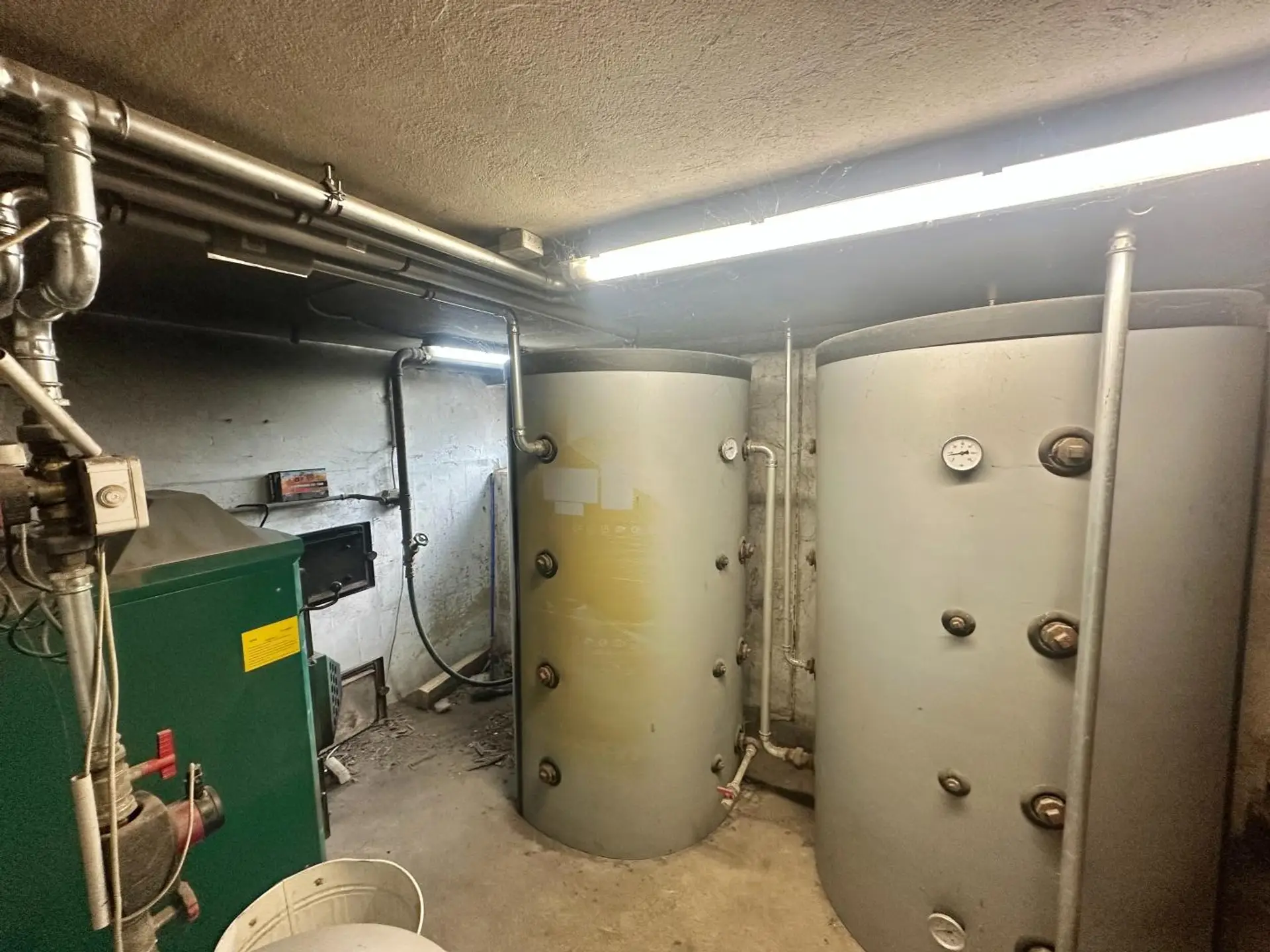 * Heizraum (Holzvergaser-Zentralheizung mit Pufferspeicher)