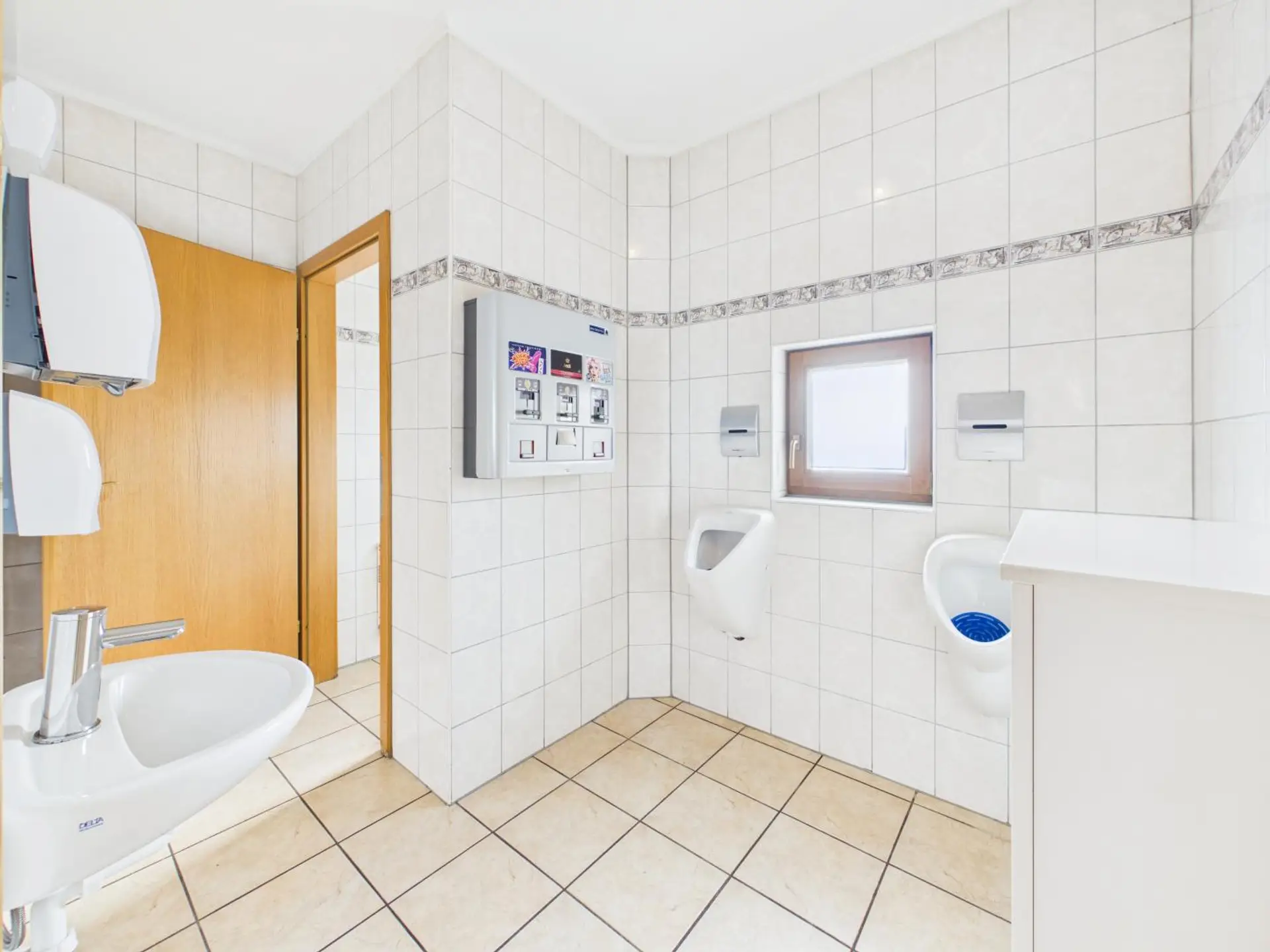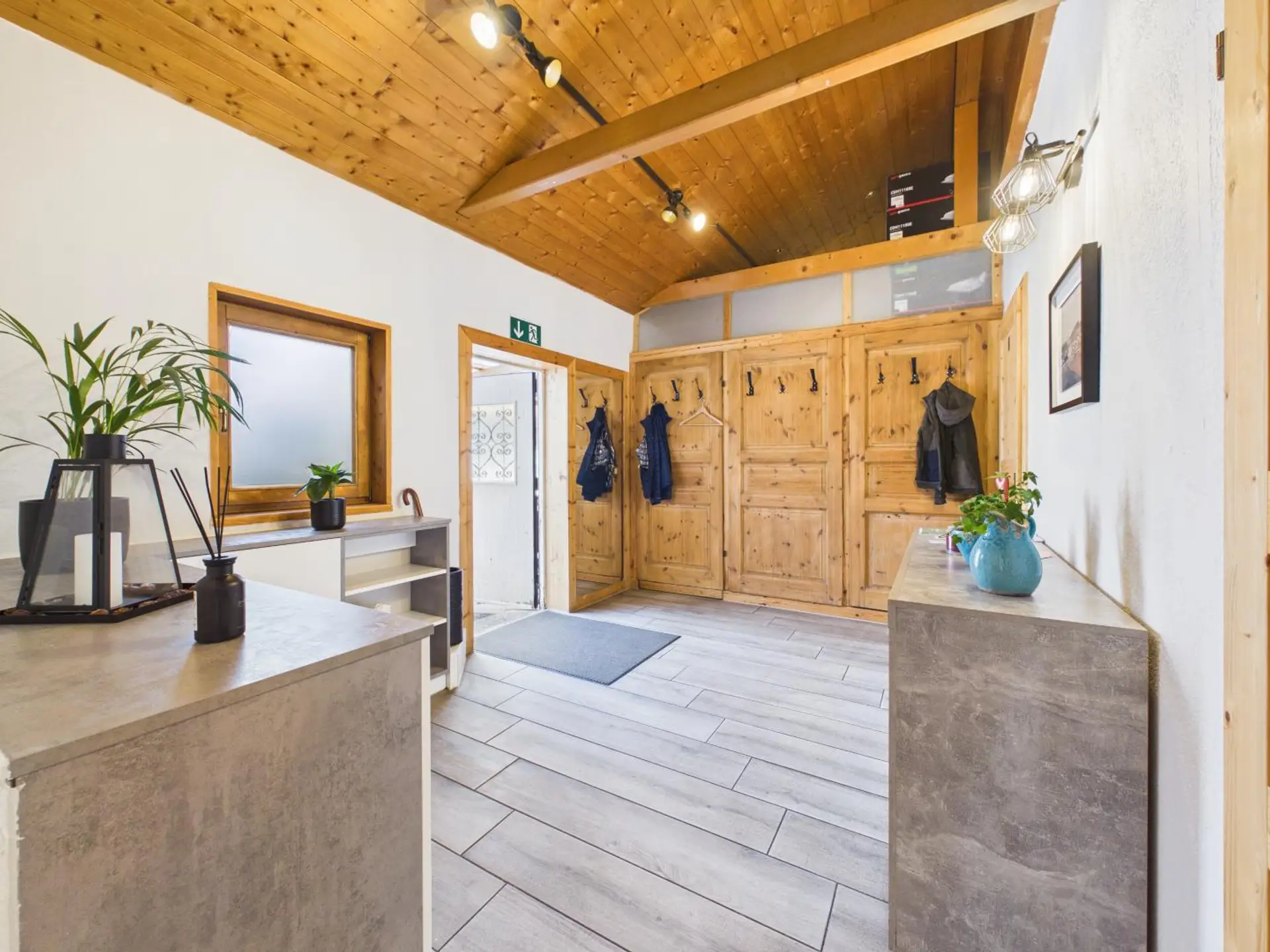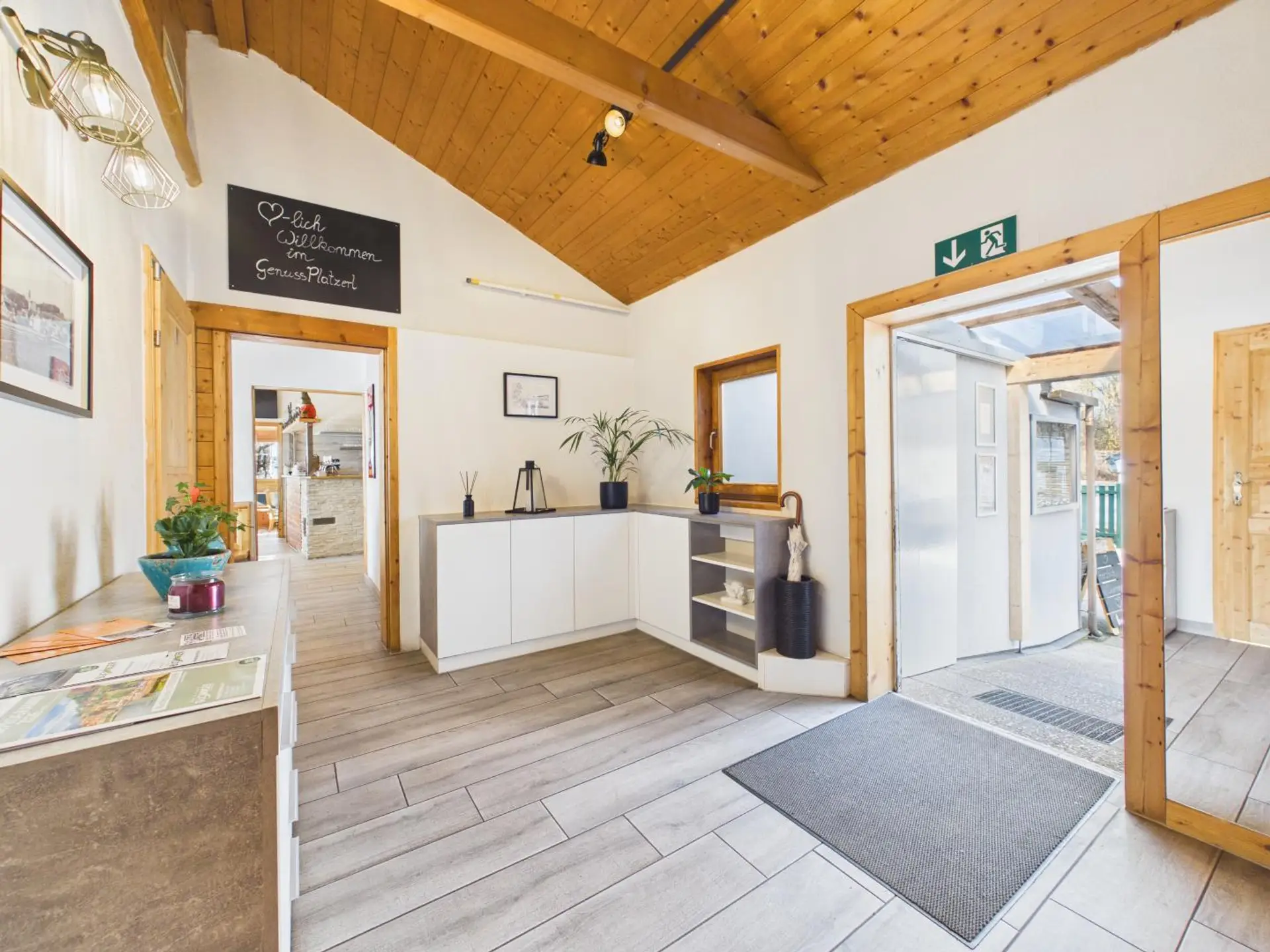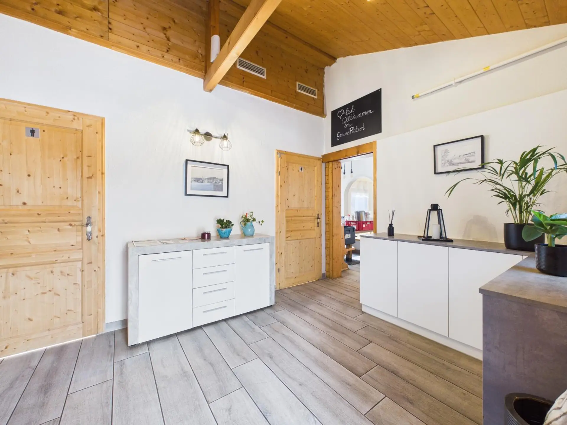 Ergänzt wird der Innenbereich durch einen großzügigen Küchenbereich, zwei praktische Lagerflächen sowie getrennte Damen- und Herren-Toiletten.