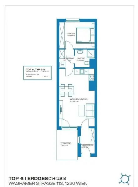 In zentraler Lage des 22. Bezirkes – Nähe Donauzentrum wurde diese Top-Anlegerwohnprojekt im Frühjahr mit insgesamt 53 Wohnungen zwischen 31 und 91 m² mit einem bis vier Zimmern, alle mit Freifläche - Loggia, Balkon oder Terrasse ausgestattet, fertiggestellt.