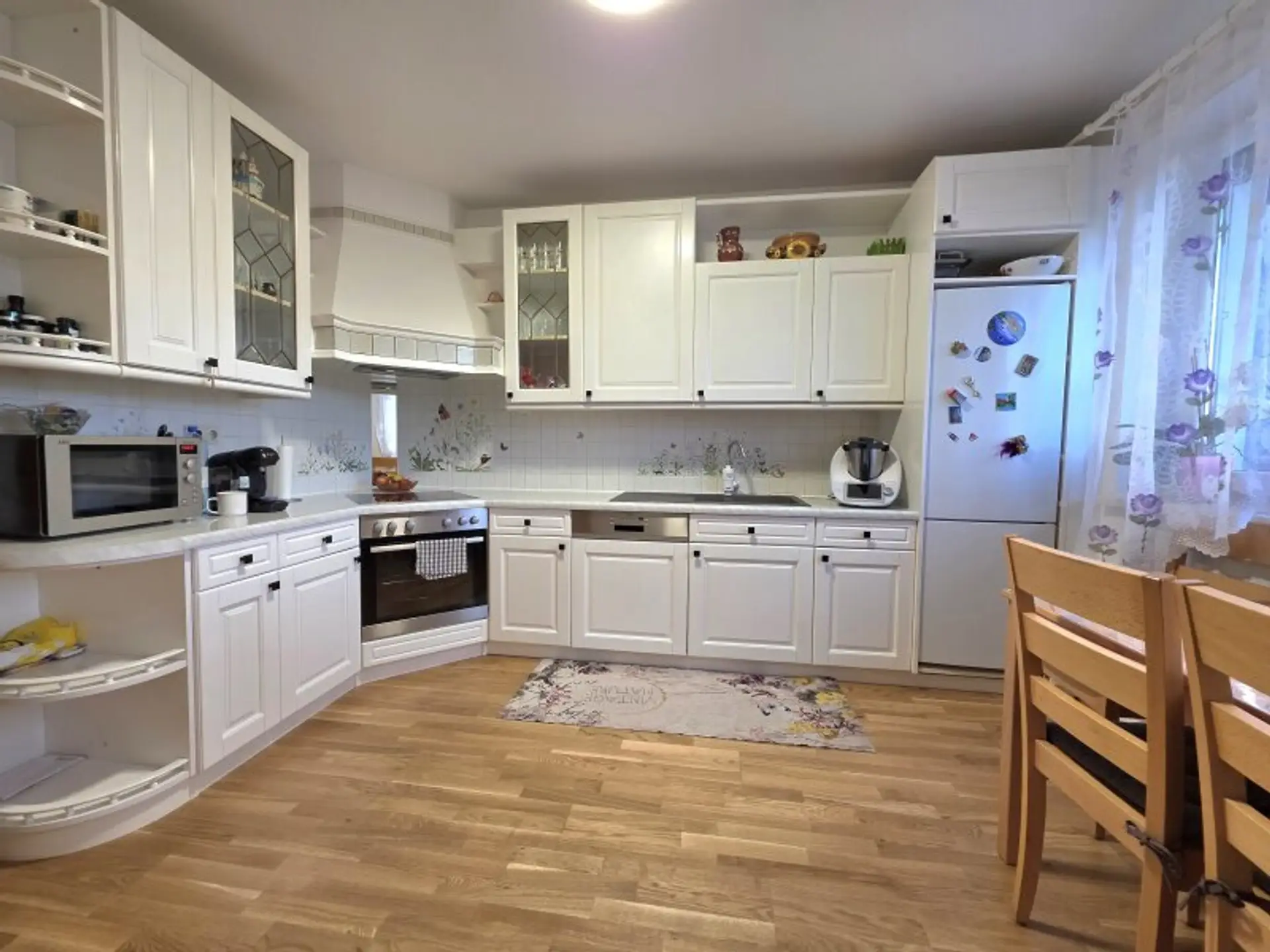 Die große Einbauküche fügt sich harmonisch in das Wohnkonzept ein und bietet sämtliche Annehmlichkeiten für komfortables Kochen. Ein praktischer Abstellraum steht hier Ihnen auch zur Verfügung.