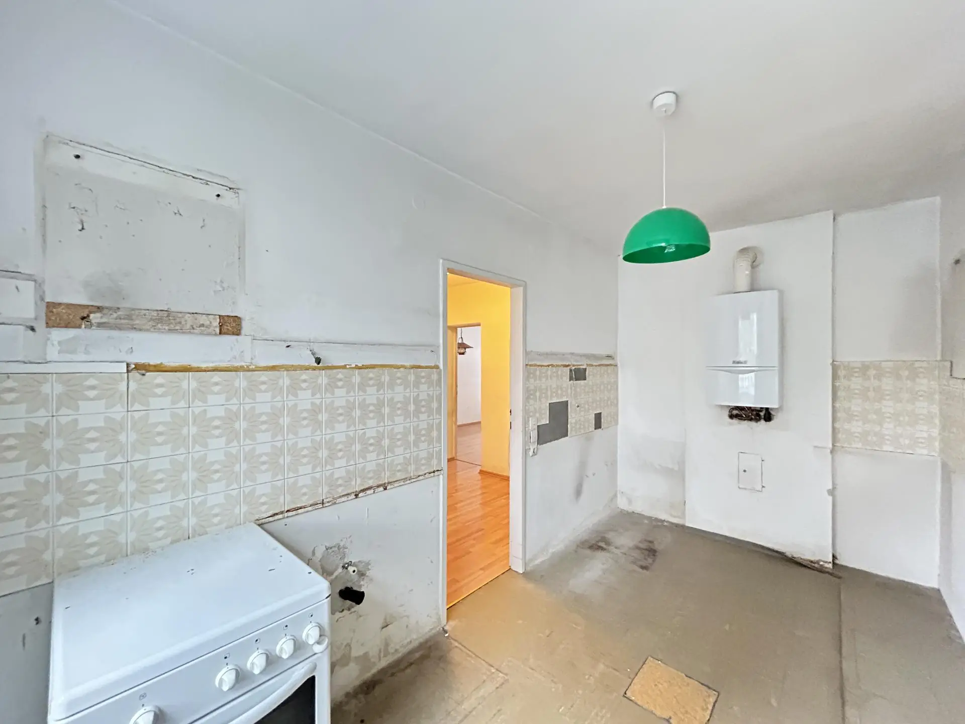 Die Wohnung ist renovierungsbedürftig. Wie auf den Bildern ersichtlich, sind Adaptierungen in den Bereichen Böden, Wände, Badezimmer, Küche sowie weitere Modernisierungsmaßnahmen erforderlich.