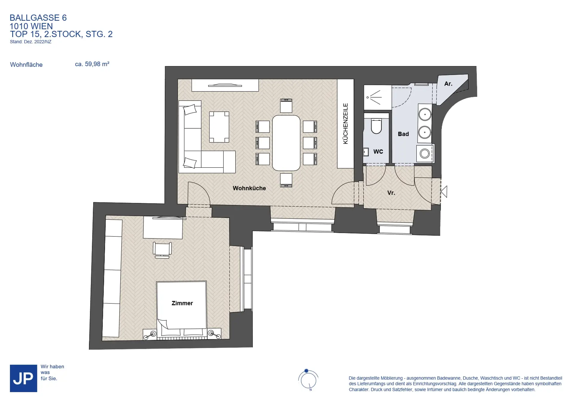 Diese repräsentative Altbauwohnung im 2. Stock eines stilvollen Innenstadtgebäudes vereint klassische Wiener Eleganz mit hochwertigem, modernem Wohnkomfort. Großzügige Raumhöhen von rund 3,00 Metern, elegante Proportionen und eine durchdachte Raumaufteilung schaffen ein außergewöhnlich hochwertiges Wohnambiente im Herzen der Wiener Innenstadt. Der großzügige Wohn- und Essbereich mit integrierter, hochwertiger Küchenzeile bildet den Mittelpunkt der Wohnung. Die offene Gestaltung sowie die geschmackvolle, voll möblierte Ausstattung ermöglichen ein sofortiges Einziehen auf gehobenem Niveau und bieten ideale Voraussetzungen für stilvolles Wohnen und repräsentatives Empfangen. Ein separat begehbares Schlafzimmer überzeugt durch seine ruhige Lage und Großzügigkeit und bietet ausreichend Platz für Schranklösungen. Das elegant ausgestattete Badezimmer mit moderner Sanitärausstattung sowie ein separates WC unterstreichen den hohen Wohnstandard. Ein praktischer Abstellraum ergänzt das Raumangebot sinnvoll. Die gelungene Verbindung aus klassischer Altbausubstanz, hochwertigen Materialien und exklusiver Möblierung macht diese Wohnung zu einer erstklassigen Stadtresidenz für anspruchsvolle Mieter. Die begehrte Lage in unmittelbarer Nähe zu Graben, Kohlmarkt und Stephansplatz garantiert urbanes Wohnen auf höchstem Niveau mit erstklassiger Infrastruktur, kultureller Vielfalt und ausgezeichneter öffentlicher Anbindung. Lage Die Liegenschaft befindet sich in absoluter Bestlage des 1. Wiener Gemeindebezirks, in der ruhigen Ballgasse, einer charmanten Seitengasse zwischen Graben und Kohlmarkt. Die Umgebung ist geprägt von historischer Bausubstanz, exklusiven Boutiquen, renommierten Gastronomiebetrieben sowie kulturellen Einrichtungen. Der Stephansdom ist in wenigen Gehminuten erreichbar. Die öffentliche Verkehrsanbindung ist ausgezeichnet: U-Bahnlinien U1 und U3 (Stephansplatz), U3 (Herrengasse) sowie mehrere Buslinien befinden sich in unmittelbarer Nähe. Sämtliche Einrichtungen des täglichen Bedarfs sowie hochwertige Einkaufsmöglichkeiten sind fußläufig vorhanden. Ansprechpartner Frau Doris Kurzweil || +43 699 17 55 66 16 || dk@jpi.at Wir weisen darauf hin, dass wir entgegen dem in der Immobilienwirtschaft üblichen Geschäftsgebrauch des Doppelmaklers – einseitig nur für den Vermieter tätig sind und wir mit dem Abgeber in ständiger Geschäftsbeziehung stehen und schon aus diesem Grund ein wirtschaftliches Naheverhältnis vorliegt.