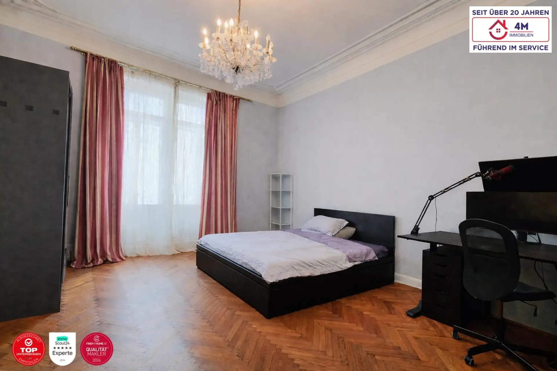 In absoluter Bestlage des 4. Bezirks, nur wenige Schritte vom renommierten Theresianum entfernt, befindet sich diese außergewöhnliche 166 m² Belle Étage Residenz in einem prachtvollen Gründerzeithaus.