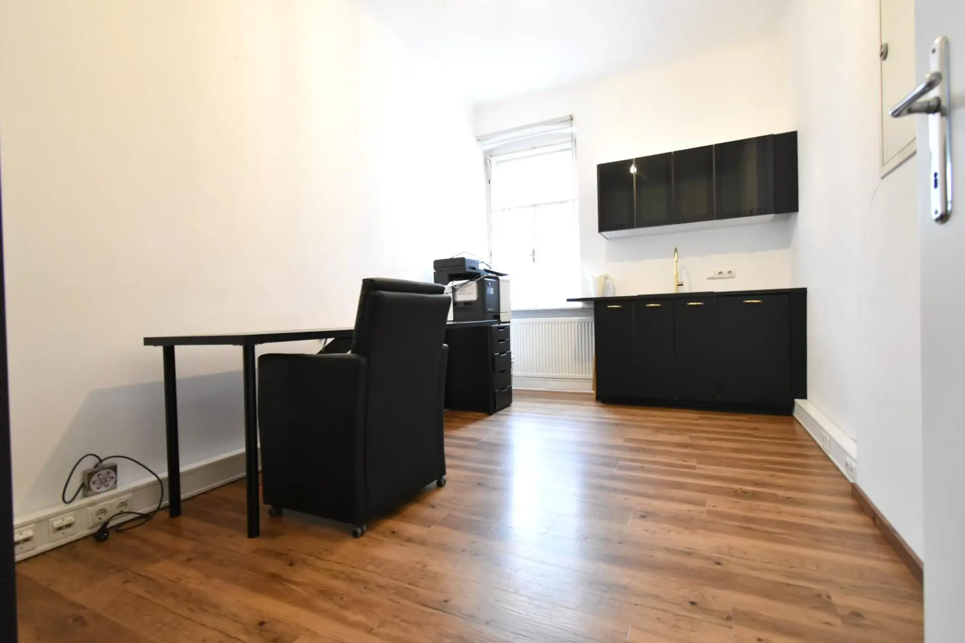 Die Räumlichkeiten sind über einen Haupteingang zentral begehbar und beinhalten zwei Zimmer, die individuell genutzt werden können, sowie einen Pausenraum inklusive Kücheanschlüsse.