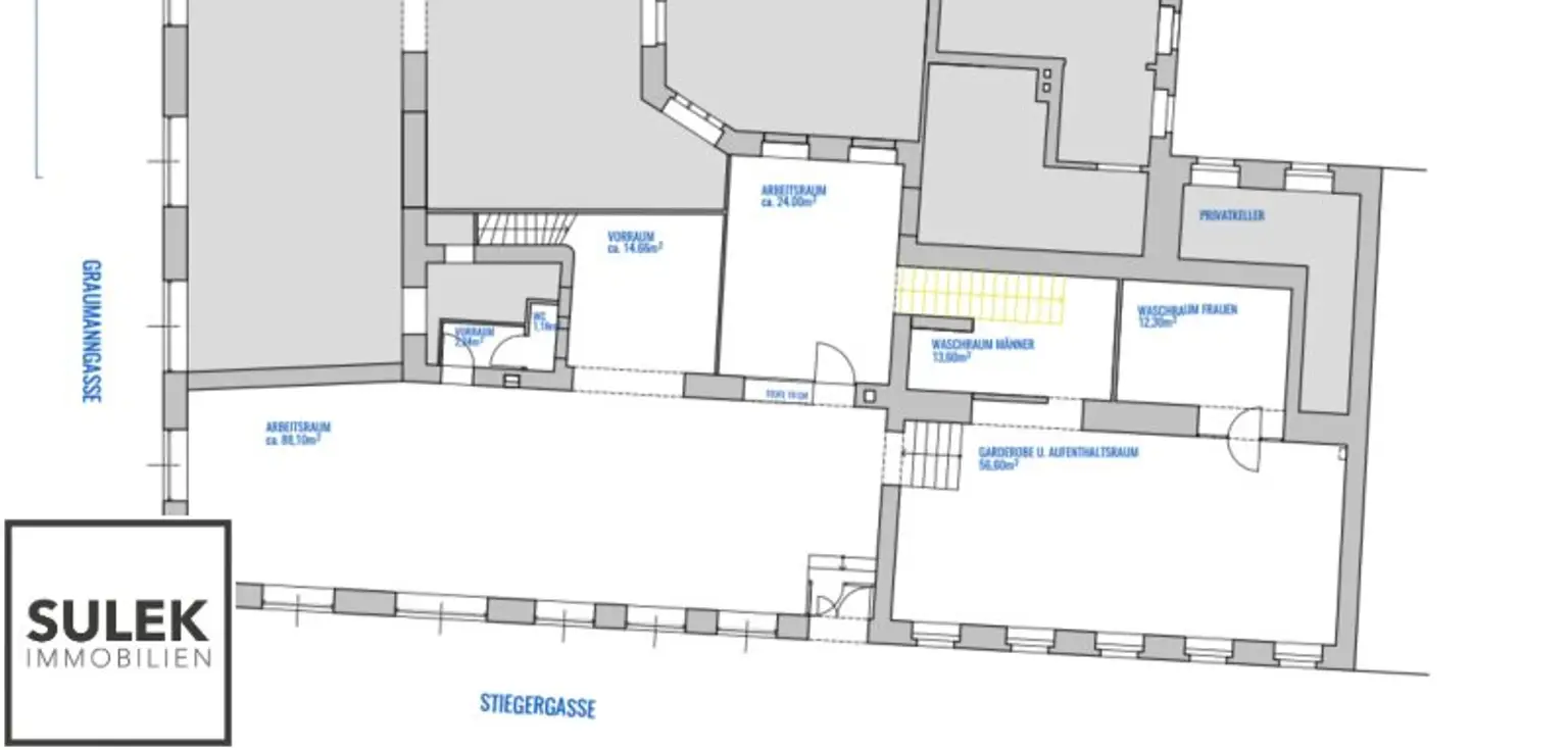 Die großzügigen und repräsentativen Flächen des ehemaligen Vienna Konservatorium, welches als Musikschule gegründet wurde, steht ab sofort einem neuen Mieter zur Verfügung. Die angebotene Liegenschaft verfügt über insgesamt rund 1.195 m² Nutzfläche, welche sich über ein Erdgeschosslokal, ein Zwischengeschoss und das erste Obergeschoss erstrecken. Zudem befindet sich im Innenhof ein Hofhaus, mit zwei Zimmern, welches zusätzlich zur Verfügung steht. Die jeweiligen Geschosse sind separat bzw. getrennt begehbar.