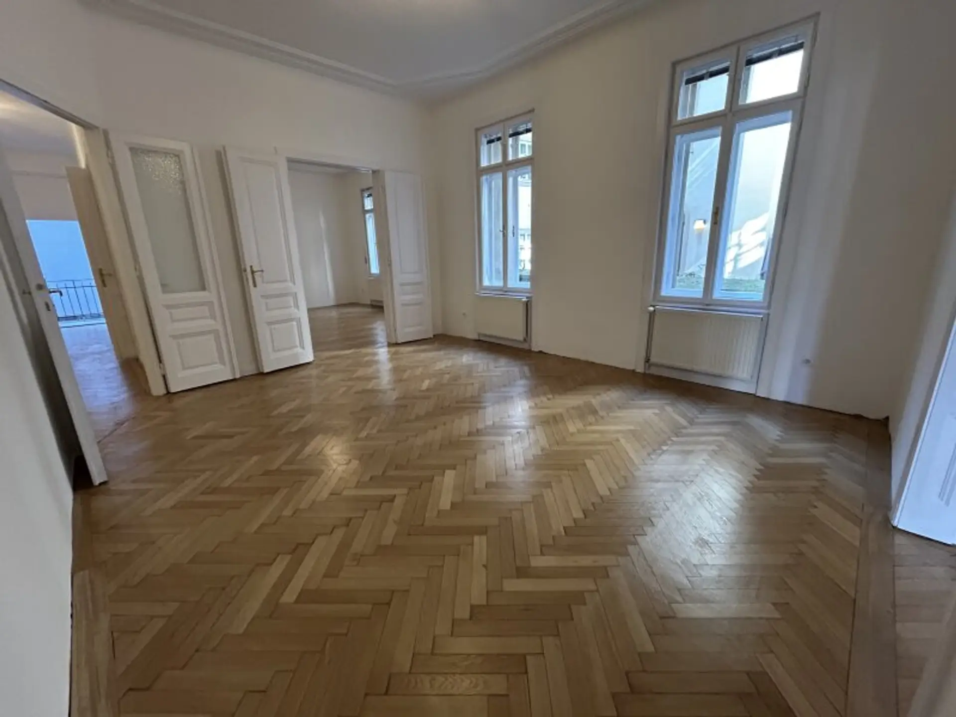 Rund 165 m² Nutzfläche / 3. Stock mit Lift / stilvolles Altbau-BÜRO mit guter Raumeinteilung / schönes Entrèe + 5 Zimmer (2 Zimmer mit jeweils ca. 26 m² + 1 Zimmer mit ca. 34m² + 1 Zimmer mit 23 m² und 1 Zimmer mit ca. 9m²) + Küche + 2 WC + Badezimmer, oder optional Abstellraum mit ca. 7m² + zwei kleine BALKONE / MIETE: € 3.644,77 INKLUSIVE Betriebskosten, zzgl. 20% USt.