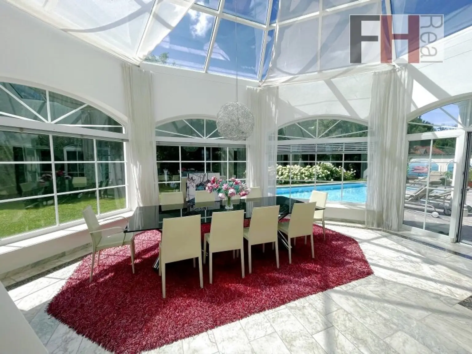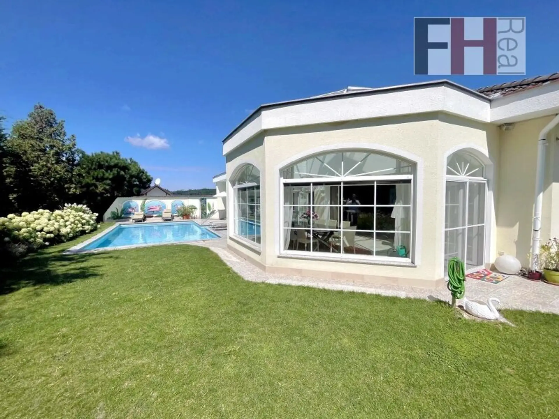Die Liegenschaft befindet sich im eleganten Gablitzer Ortsteil Hochbuch in bester Lage mit Fernsicht und einer Ausrichtung nach Süden/Westen. Das 1464m² große, nahezu ebene Grundstück bietet jeden erdenklichen Komfort mit solarbeheiztem Pool, Weinkeller und einer großen überdachten Terrasse für Privatnutzung oder für angenehmen Stunden mit Ihren Gästen. Der Garten ist sehr gepflegt, schön bepflanzt und bietet auch im Sommer das eine oder andere schattige Plätzchen. Die exklusive Villa wurde im Jahr 1986 in idealer Position am Grundstück neu errichtet und immer wieder hochwertig modernisiert und energieeffizient optimiert. Der Grundriss ist sehr repräsentativ und nahezu perfekt geplant, die Großzügigkeit des Anwesens ist beeindruckend und sucht ihresgleichen. Die gesamte Wohnnutzfläche beträgt mehr als ca. 385m², die reine Wohnfläche ca. 245m². Geboten werden u.a. 5 gut dimensionierte Zimmer, 1 Küche, 2 Bäder, 2 Toiletten plus Nebenräume und eine südseitige Terrasse mit mehr als 40m².