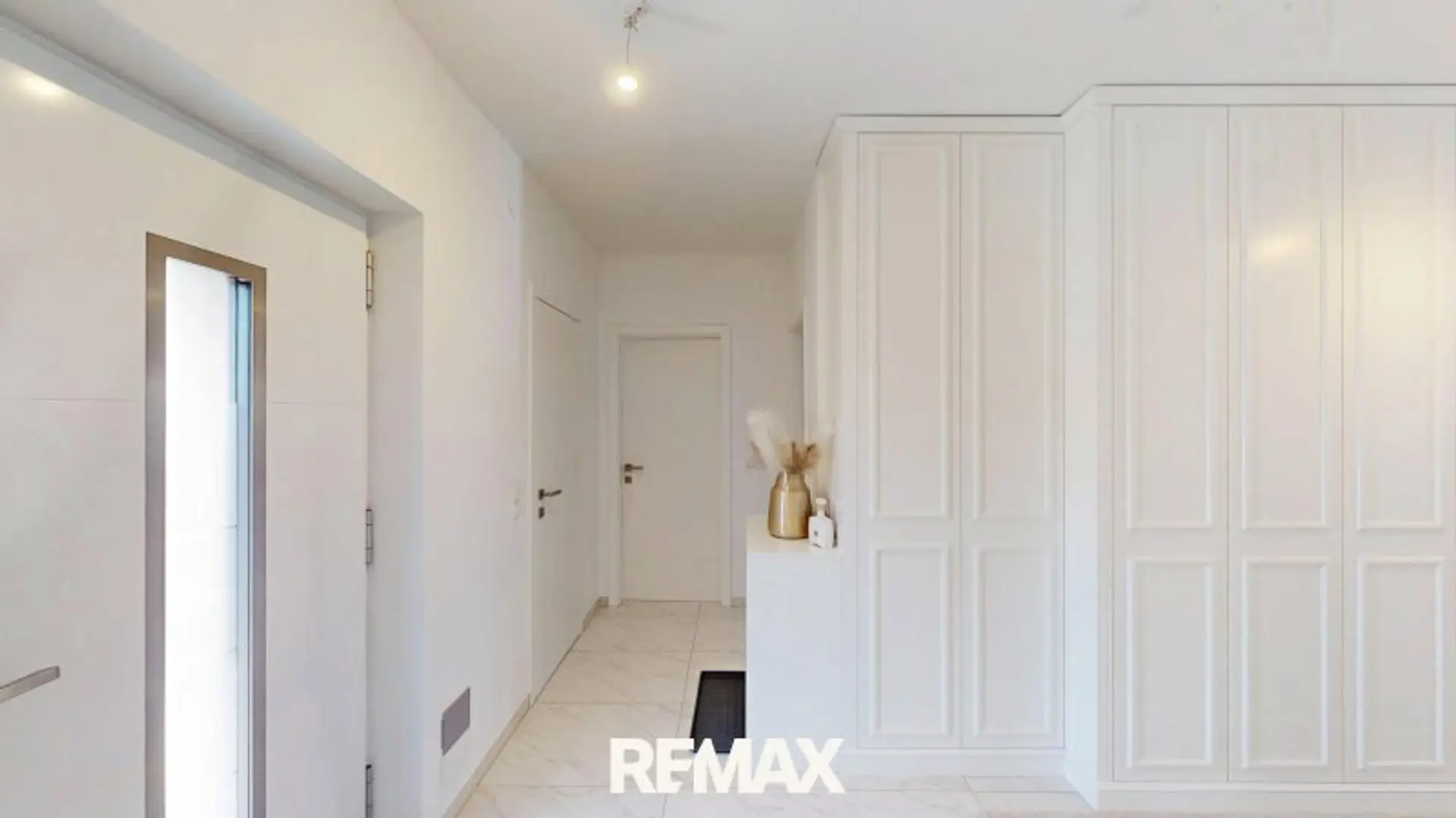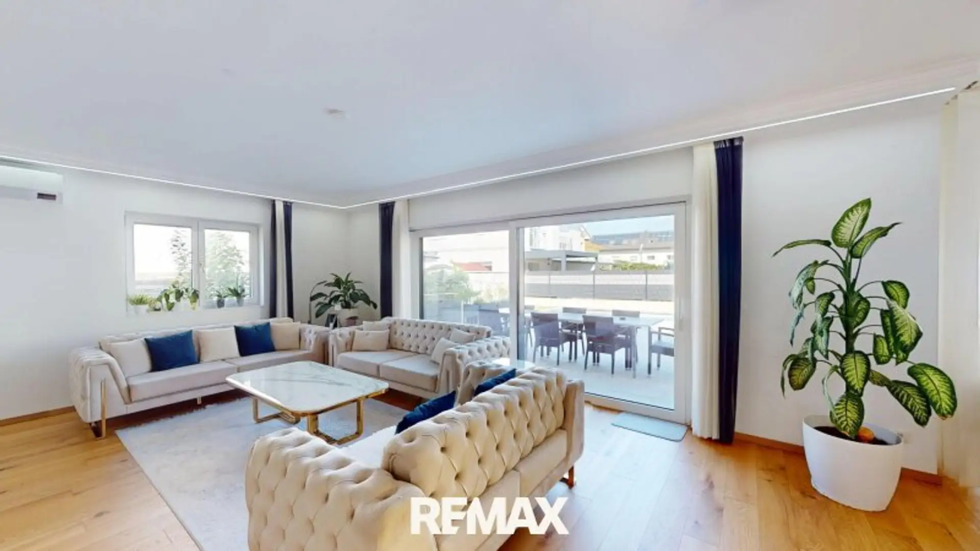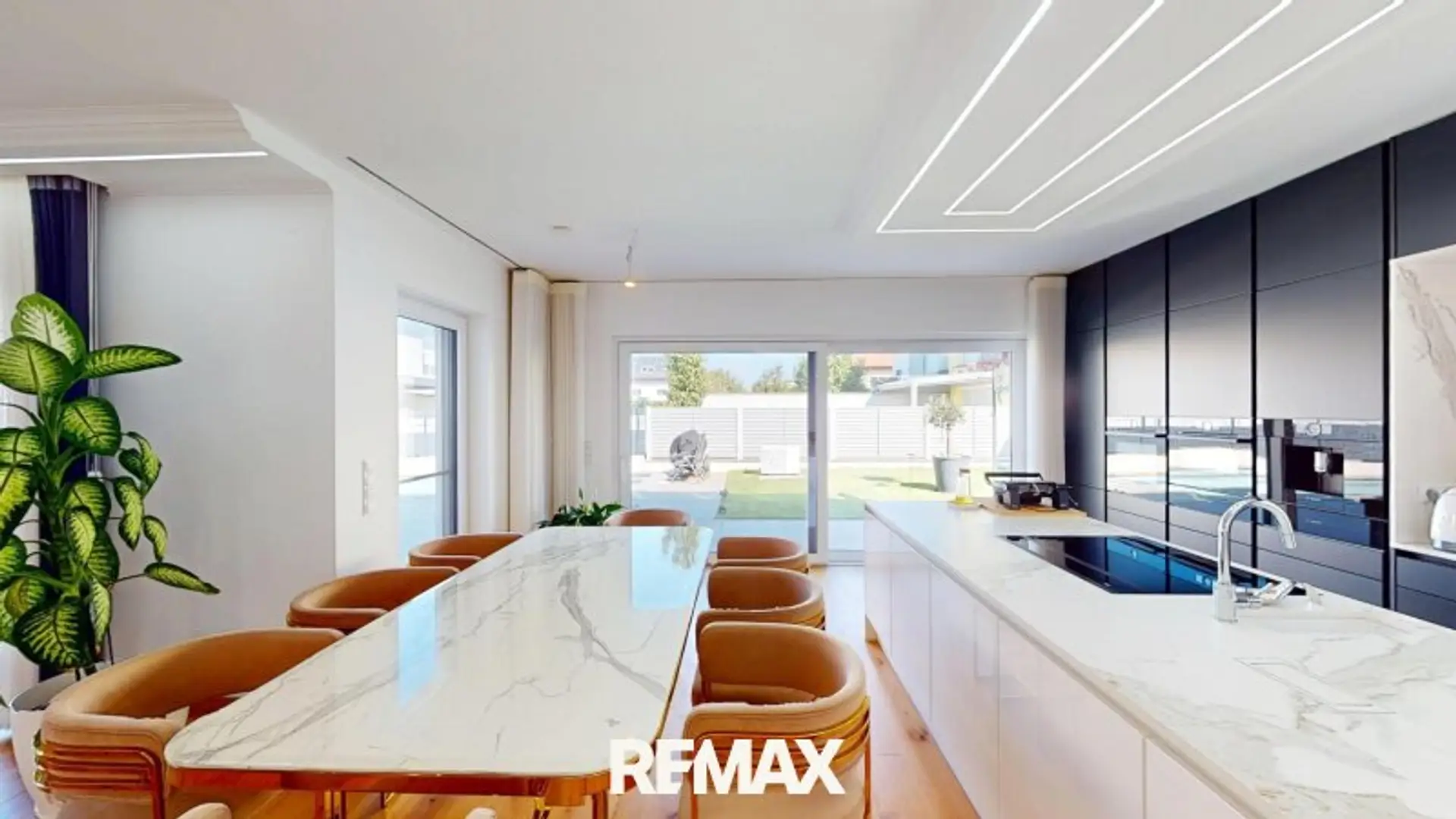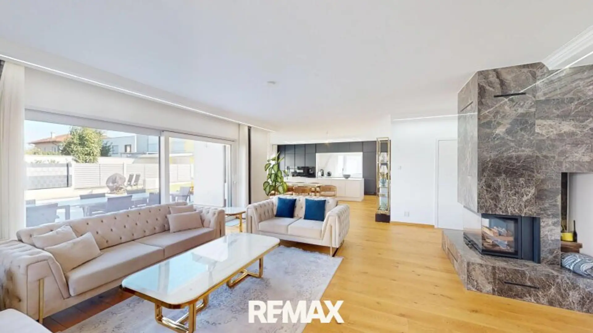 Die Villa wurde ca. 2021 in massiver Ziegelbauweise mit hochwertigem Vollwärmeschutz errichtet und bietet mit einer Raumhöhe von rund 2,75 m ein großzügiges, helles Wohngefühl. Dreifach isolierte Kunststofffenster mit elektrischen Rollläden (inkl. Fernbedienung) und integrierten Fliegengittern, elegante Eichenparkettböden geölt sowie edler Feinsteinzeug in allen Bädern unterstreichen die exklusive Ausstattung.