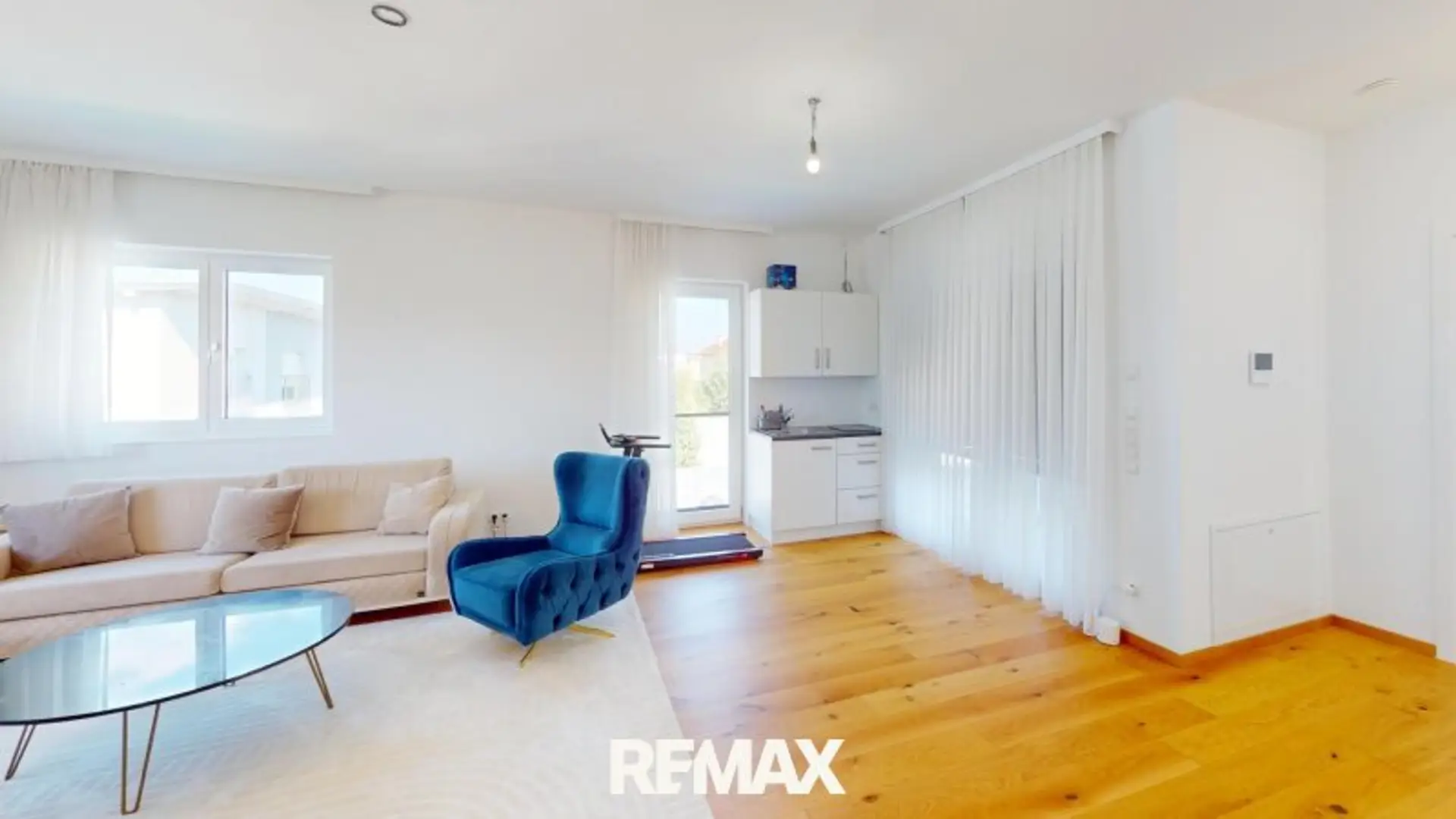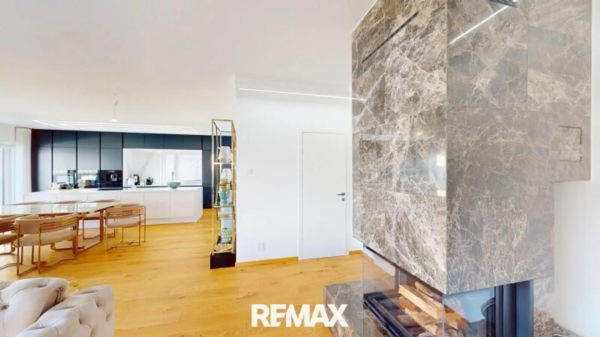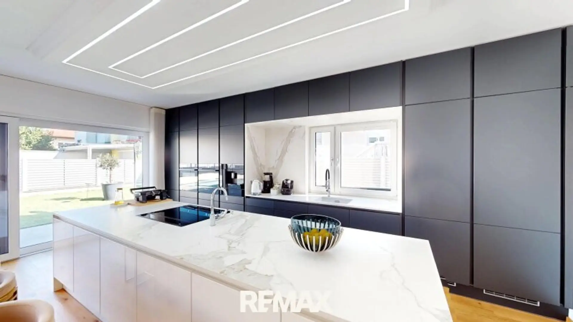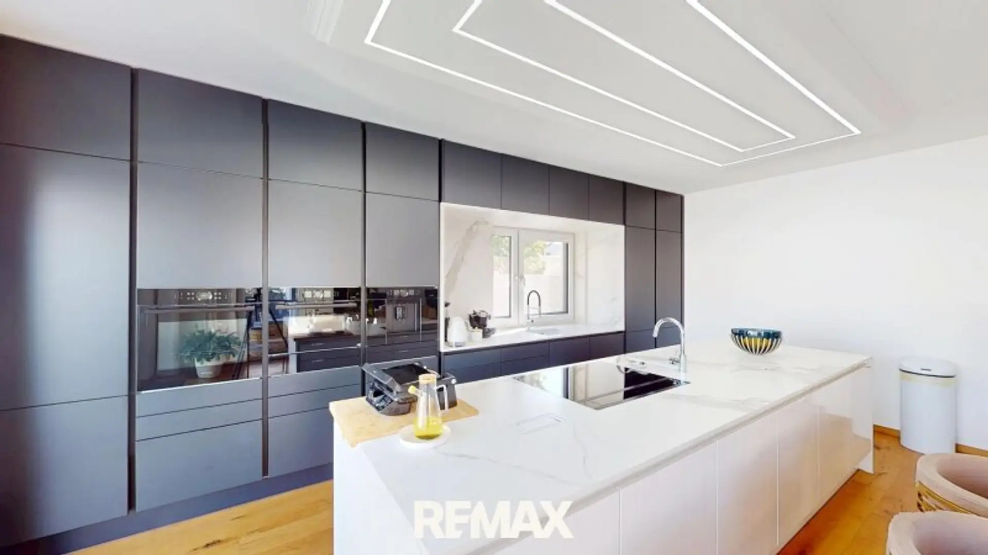 Die Villa wurde ca. 2021 in massiver Ziegelbauweise mit hochwertigem Vollwärmeschutz errichtet und bietet mit einer Raumhöhe von rund 2,75 m ein großzügiges, helles Wohngefühl. Dreifach isolierte Kunststofffenster mit elektrischen Rollläden (inkl. Fernbedienung) und integrierten Fliegengittern, elegante Eichenparkettböden geölt sowie edler Feinsteinzeug in allen Bädern unterstreichen die exklusive Ausstattung.