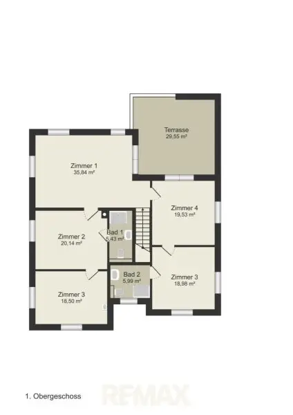 -Klimaanlagen: zwei im Erdgeschoss, zwei im Obergeschoss