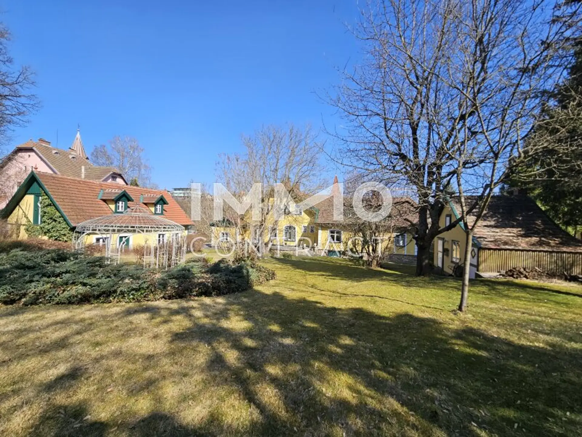 Die 2137 m² große Liegenschaft umfasst neben dem Hauptgebäude, vier Nebengebäuden und zusätzliche Stellmöglichkeiten für ein bis zwei PKW. Der nach Westen ansteigenden Garten mit einer Gesamtfläche von 1714 m² präsentiert sich in einer parkähnlichen Struktur mit einem Holzgartenhaus aus dem Jahr 1913. Der Blick in den Garten kann von der ca. 45 m² großen südwestseitig ausgerichteten Terrasse oder im Winter vom Terrassenzimmer des Hauses genossen werden.