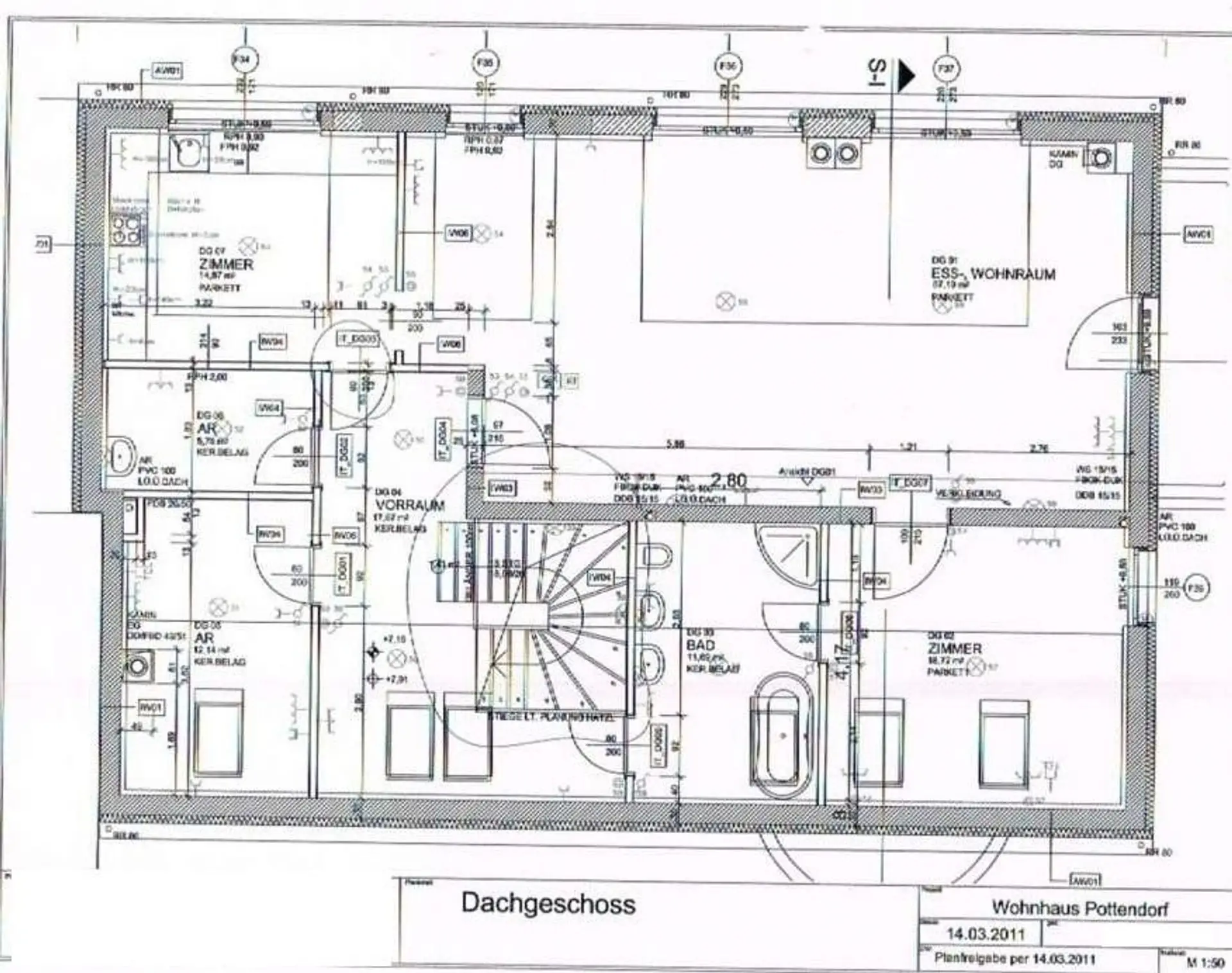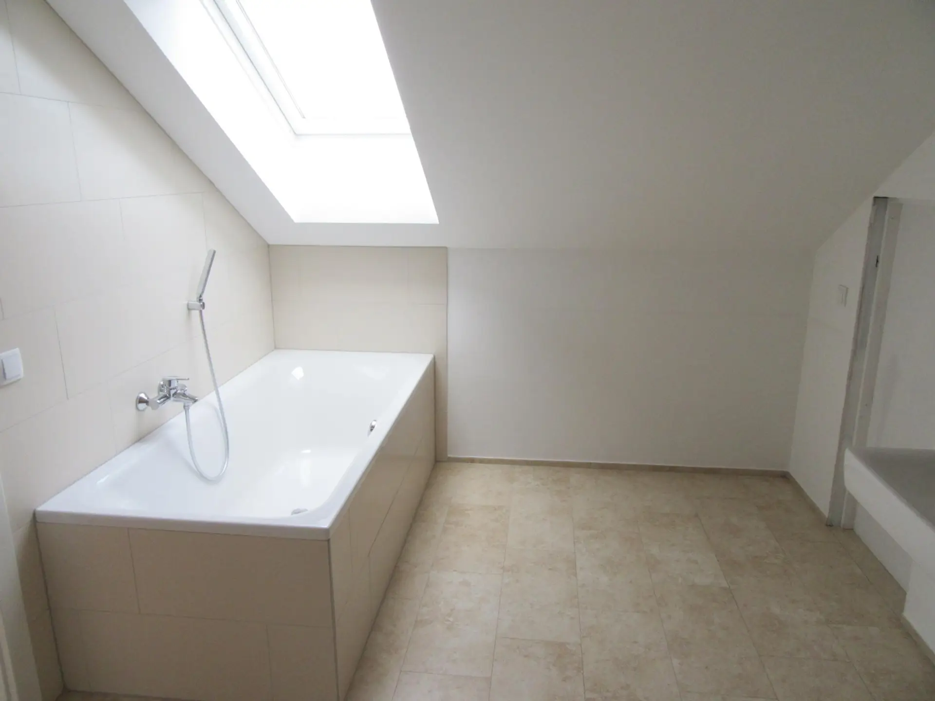 Dachgeschoß: Wohnraum mit integrierter Küche, 2 Zimmer, Schrankraum, Badezimmer,