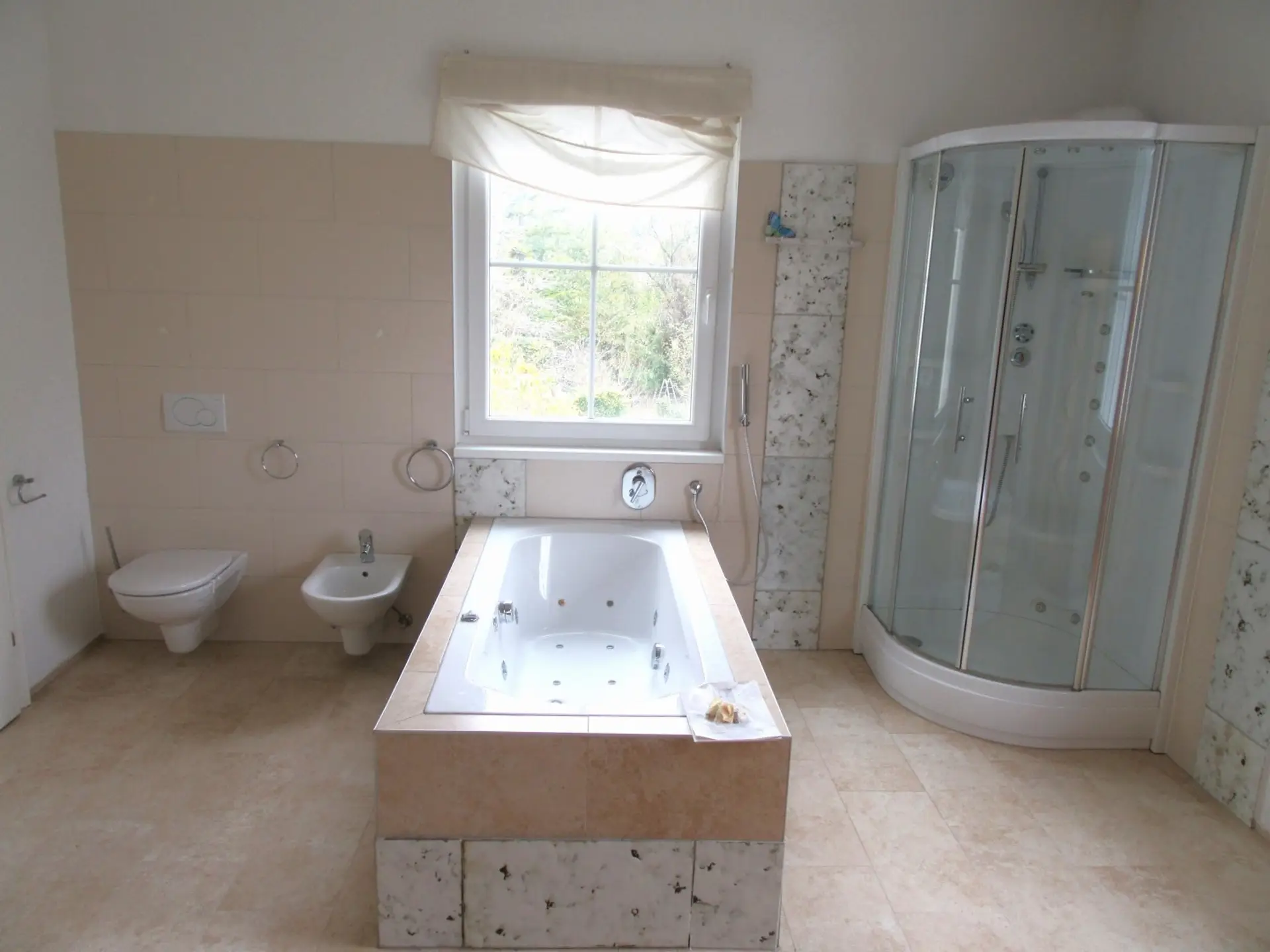 Diese neuwertige Villa präsentiert die gehobene Ausstattung mit Parkettböden, elektrische Jalousien, Bodenbelege zeitweise mit Marmor, offener Kamin, Fussbodenheizung (Gas), Luxusbäder, Sauna, Einbauküchen, Historische Elemente aus dem 18. Jahrhundert, Hausbrunnen, Balkon, Zugang zum Schlosspark.