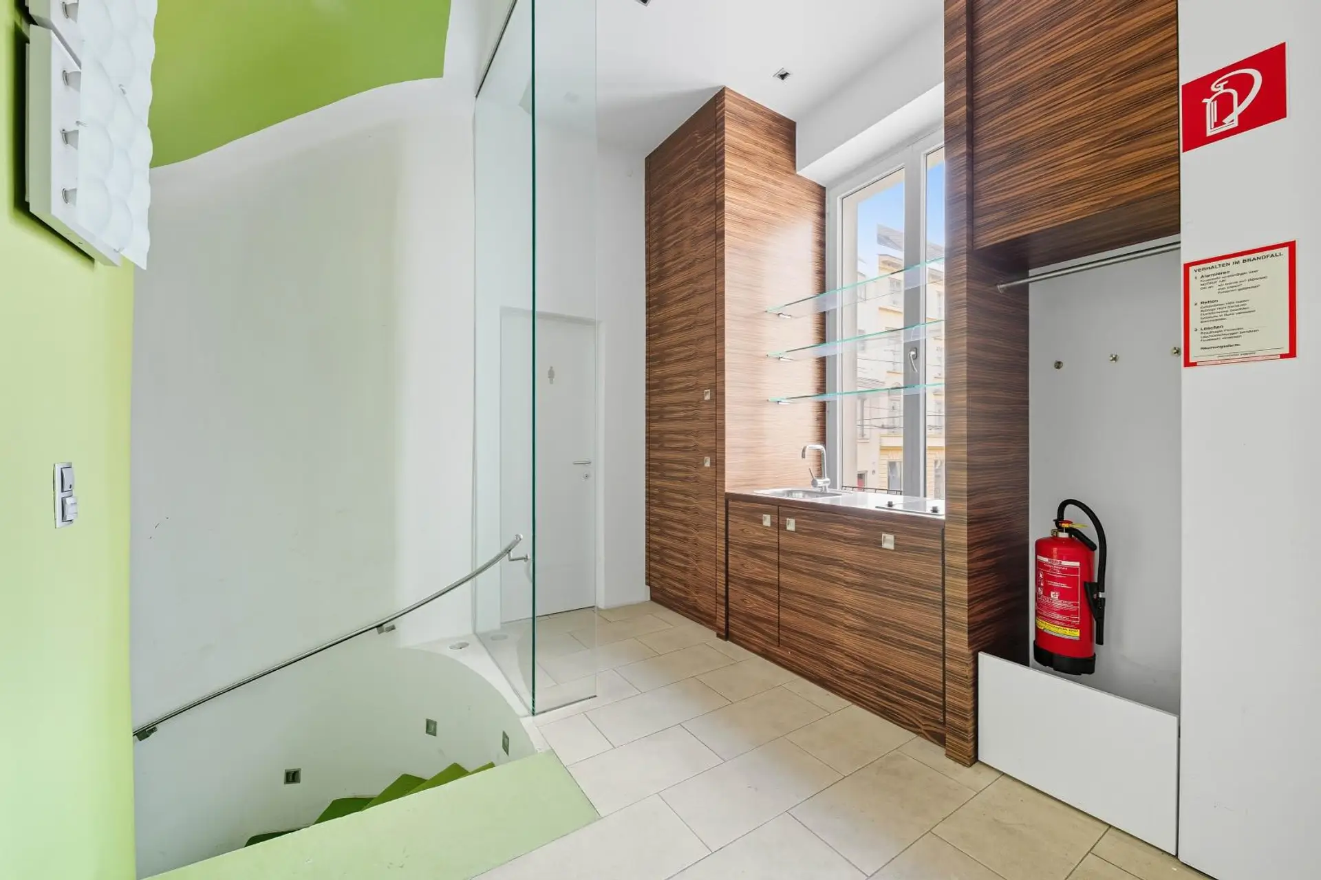 Über den beeindruckenden Eingangsbereich gelangen Sie zum Geschäftslokal im EG sowie zu den Büroflächen in den oberen Stockwerken. Das großzügige Entrée im Erdgeschoss und die hohen Räume schaffen eine ganz besondere Atmosphäre. Die Mietflächen sind hell und offen konzipiert. Die zeitlose Konstruktion, verbunden mit natürlichen Baustoffen, schafft ein Spannungsfeld aus Sachlichkeit und Eleganz. Die perfekte Lage gepaart mit Komfort & Ambiente erlaubt hier kreatives Arbeiten.