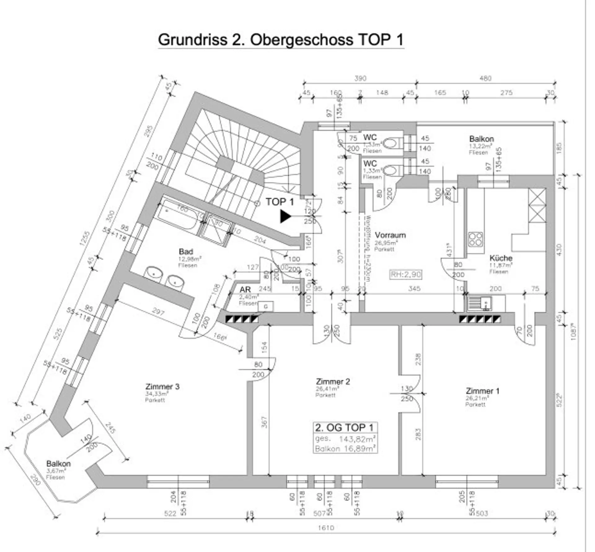 * Vorraum / Empfangsbereich: 26,95 m² – zentraler Eingangsbereich mit Balkonzugang