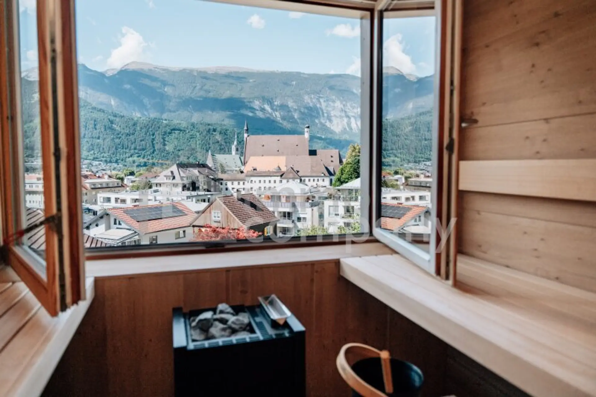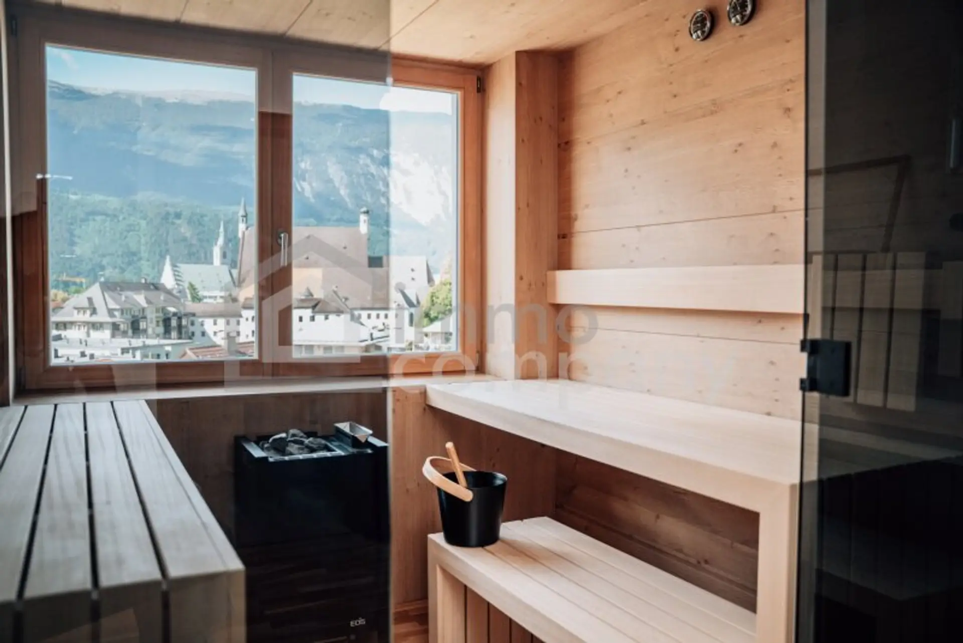 * Wellness: Sauna von Deisl mit Ausblick über die Stadt