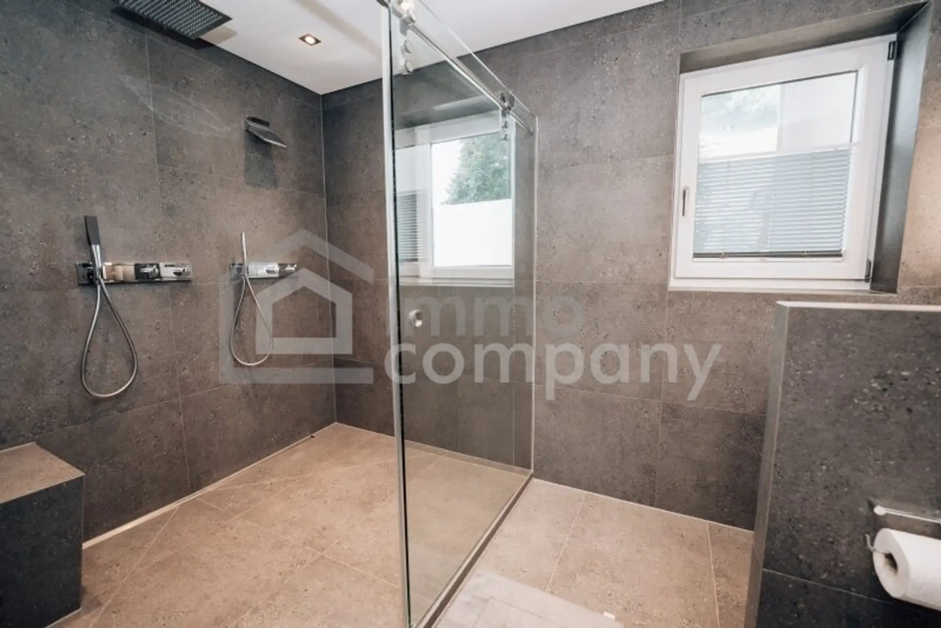 * Bäder: Sanitärobjekte von Dornbracht und Vola; Großraumdusche im Saunabereich