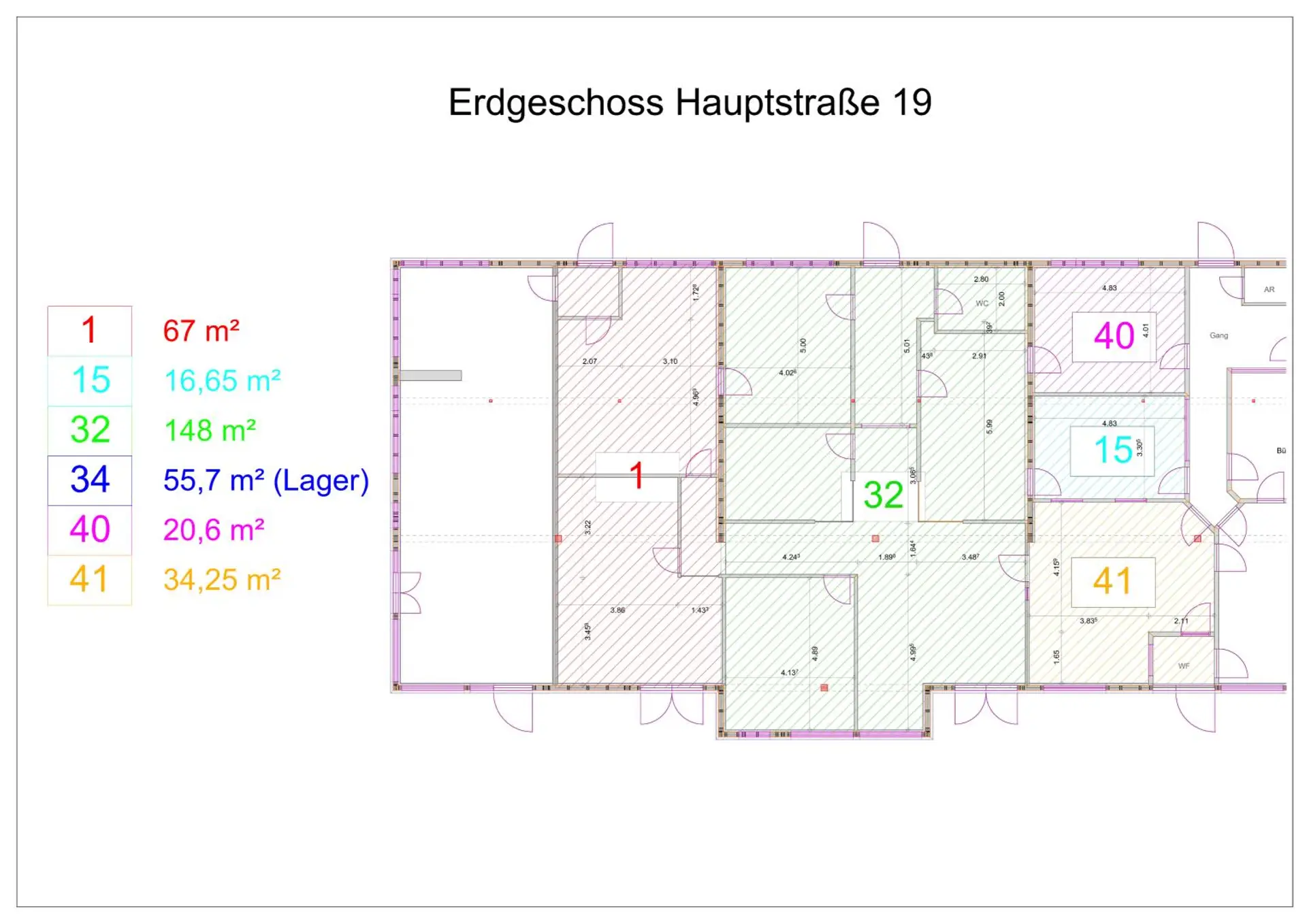 Zusätzlich besteht die Möglichkeit, ein Lager mit 55,70 m² anzumieten.