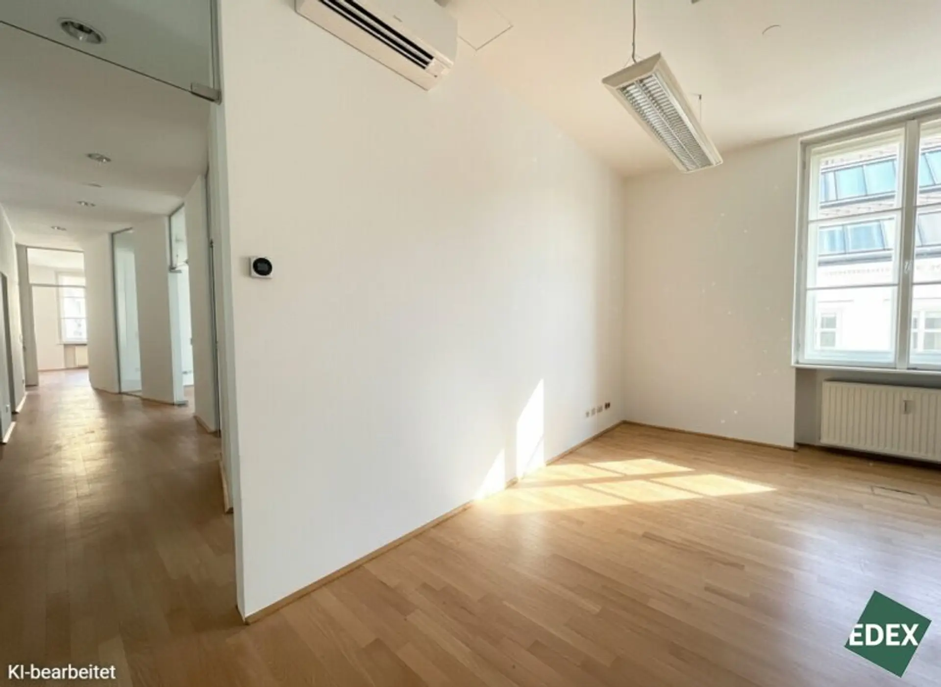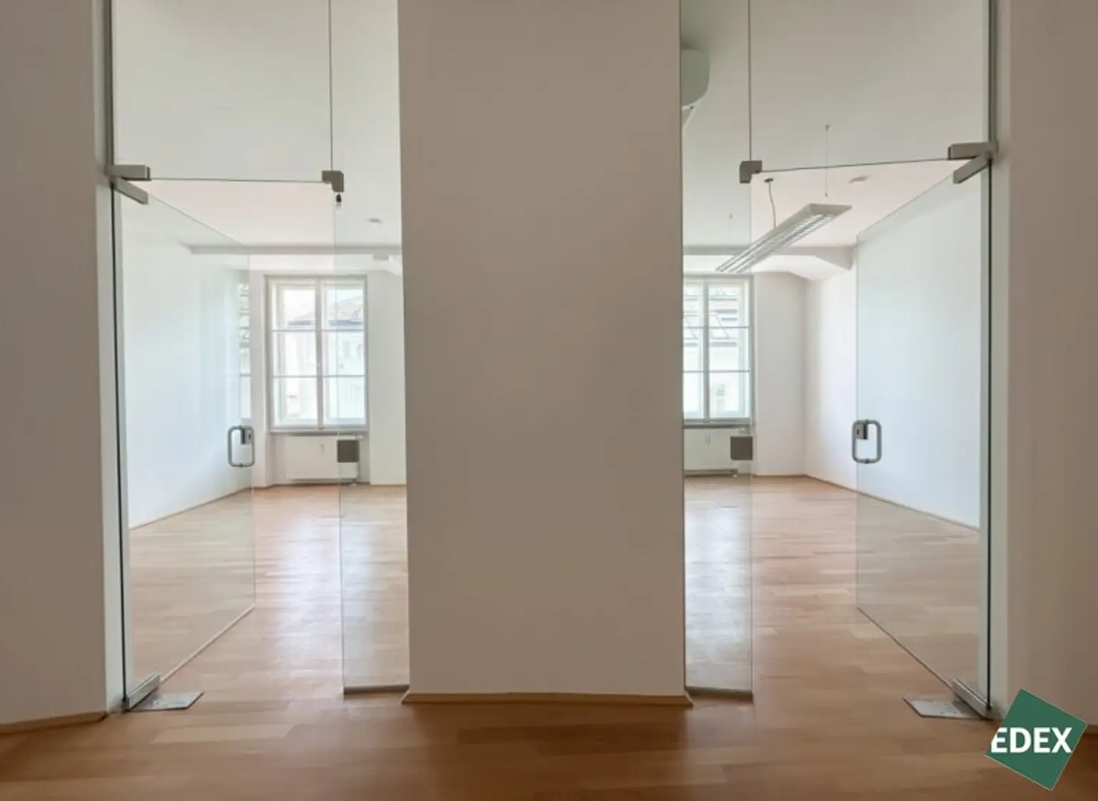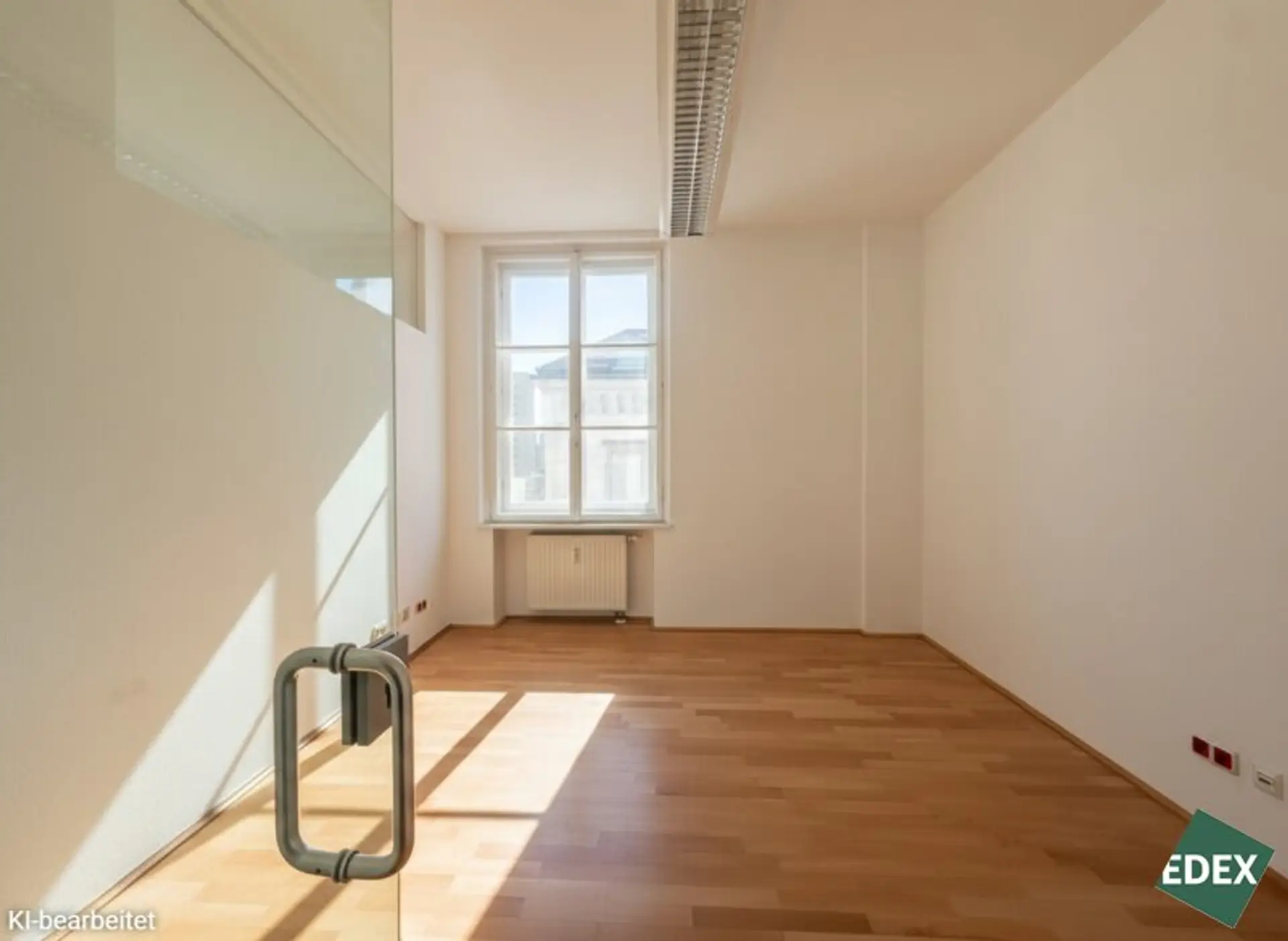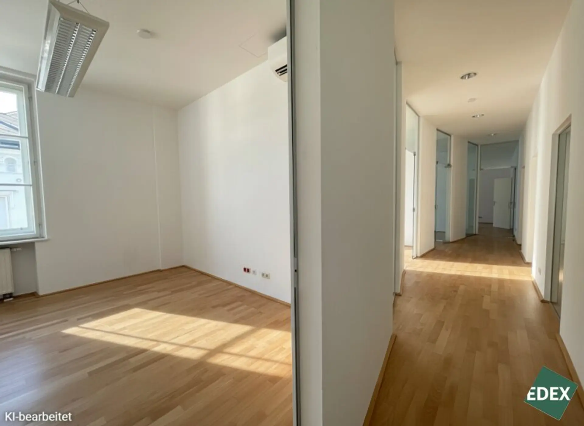 Zur Vermietung gelangt eine helle Bürofläche mit ca. 169 m² direkt zwischen Karlsplatz und Stadtpark. Die Fläche besteht aus insgesamt 6 unterschiedlich großen und separat begehbaren Zimmern, einem Vorraum, getrennten WC-Einheiten sowie einer Teeküche. Die innenliegenden Bereiche profitieren von durchdacht eingesetzten Glaselementen, die Tageslicht in die Fläche bringen und eine helle, offene Arbeitsatmosphäre schaffen. Das Haus samt Eingangssituation ist in einem makellosen Zustand und garantiert einen repräsentativen Unternehmensauftritt.